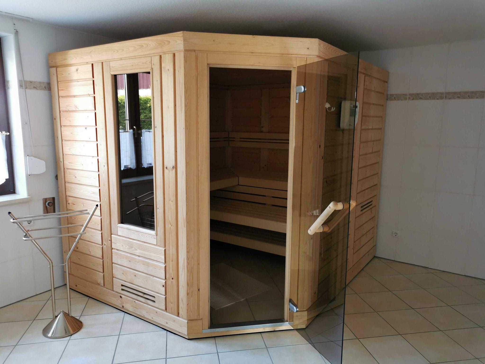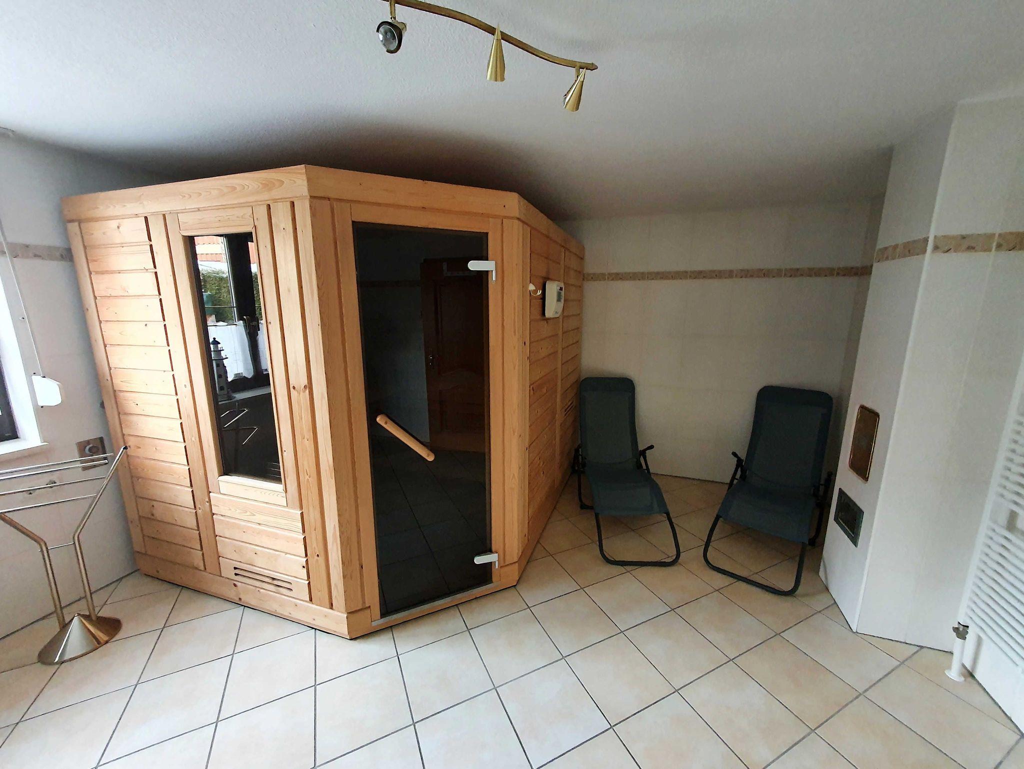 Die Sauna kann für einen Saunaabend inkl. verschiedene Aromaaufgüsse und Saunahandtücher für 35Euro dazu gebucht werden.