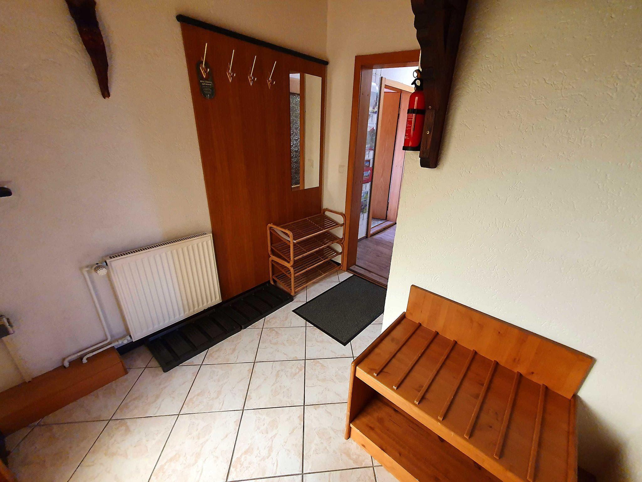 Eine Infotafel im Flur gibt eine gute Übersicht Harzer Highlights. Im Hauseingang (Diele) bestehen genügend Möglichkeiten der Kleider- und Schuhablage. Im Abstellraum finden Sie Waschmaschine und Dinge des täglichen Gebrauchs. Ihre Fahrzeuge können sicher auf dem Grundstück des Ferienhauses abgestellt werden. 382 m² Grundstücksfläche (Einzelstandort) mit überdachter Terrasse und Grill sorgen für erholsame Stunden.