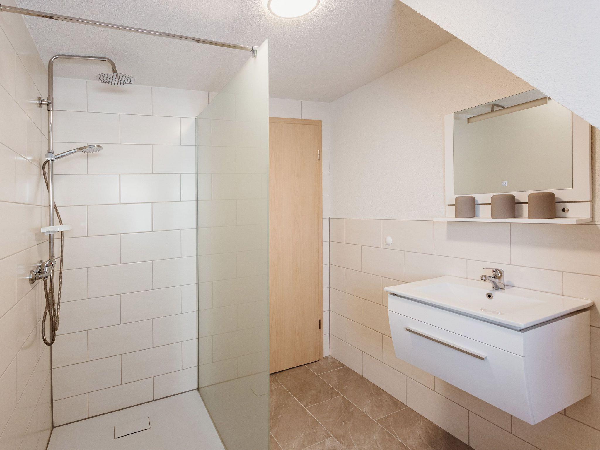 Die komplett ausgestattete Küche lässt keine Wünsche offen und beinhaltet eine Spülmaschine, Mikrowelle, Gefrierkombination, Backofen, Herd, Toaster, Kaffeemaschine und Wasserkocher. Im gemütlichen Wohnzimmer mit Esstisch und TV können Sie entspannte Abende verbringen. Das Badezimmer ist mit einer großen Dusche ausgestattet.