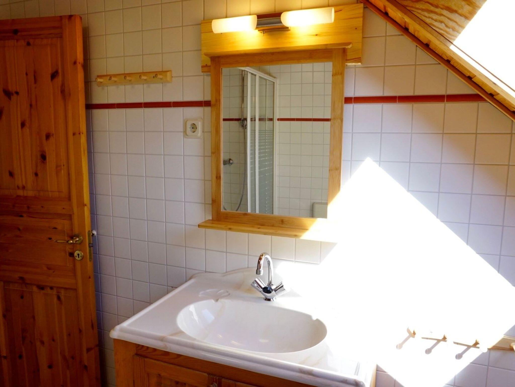 Sie wohnen in einem Ferienhaus für bis zu 5 Personen auf ca. 65 m². Im Erdgeschoss finden Sie einen geräumigen Wohnraum mit bequemer Couch, separatem Essplatz, SAT-TV, HiFi-Anlage mit CD-Player, eine voll ausgestattete Einbauküche mit Mikrowelle, Abstellraum und ein separates Gäste-WC. Im Dachgeschoss gibt es ein Schlafzimmer mit Doppelbett, ein Schlafzimmer mit zwei getrennten Betten (davon eines mit Ausziehfunktion) sowie ein Duschbad/WC. Außen ist ein zusätzlich absperrbarer Abstellraum. Die große, befestigte Terrasse ist weitestgehend überdacht. Aussenstellplatz für PKW.