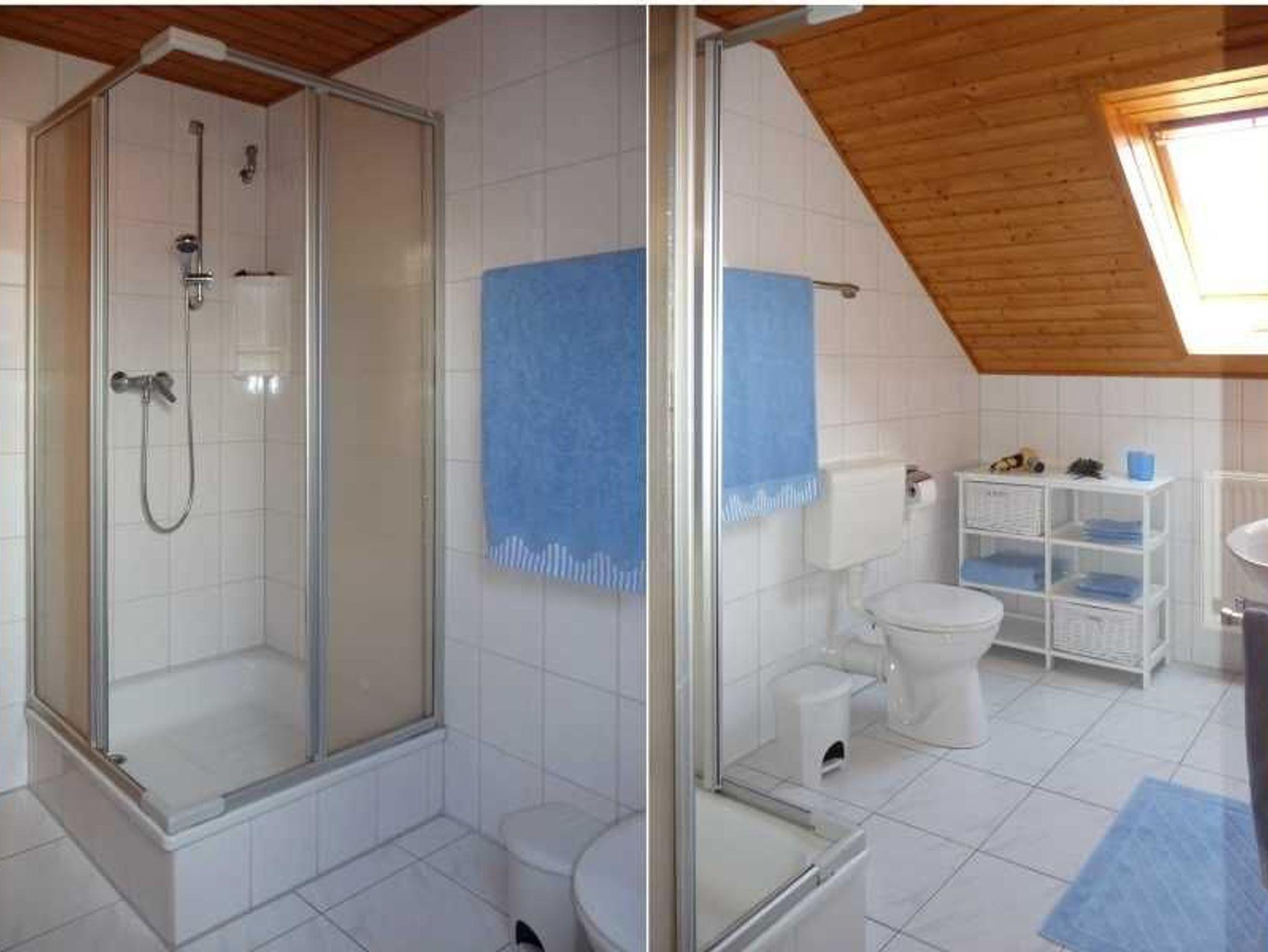 Im Obergeschoss liegen zwei Schlafzimmer ? eines mit Doppelbett, das andere mit zwei Einzelbetten und zusätzlichem Sitzbereich mit SAT-LED-TV. Auf dieser Etage befindet sich außerdem ein Bad mit Dusche/WC, Kosmetikspiegel und Föhn.
