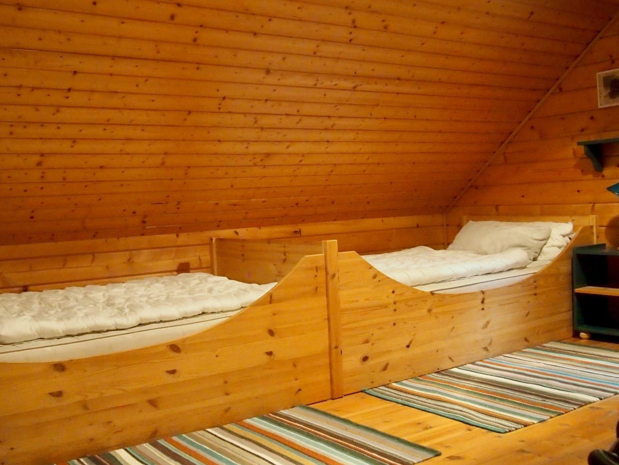 Sie wohnen in einer 3-Zimmer-Holzdoppelhaushälfte für bis zu 4 Personen auf ca. 65 m². Im Erdgeschoss finden sie einen geräumigen Wohnraum mit CD-Radio und SAT-TV, separater Essplatz, eine voll ausgestattete Küchenzeile mit Geschirrspüler, Abstellraum und ein separates Gäste-WC. Im Dachgeschoss ein Schlafzimmer mit zwei separaten Betten, ein Schlafzimmer mit Doppelbett sowie ein Duschbad/WC. Außen ist ein zusätzlich absperrbarer Abstellraum. Die große befestigte Terrasse mit Liegestühlen ist weitgehend überdacht. PKW-Außenstellplatz in der Anlage.