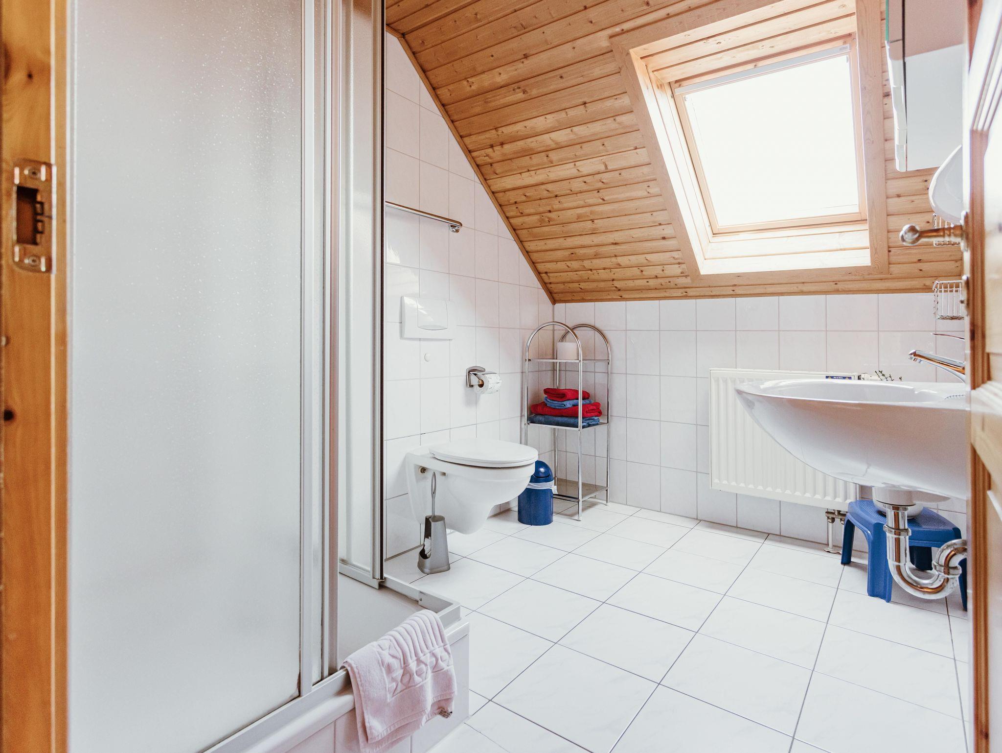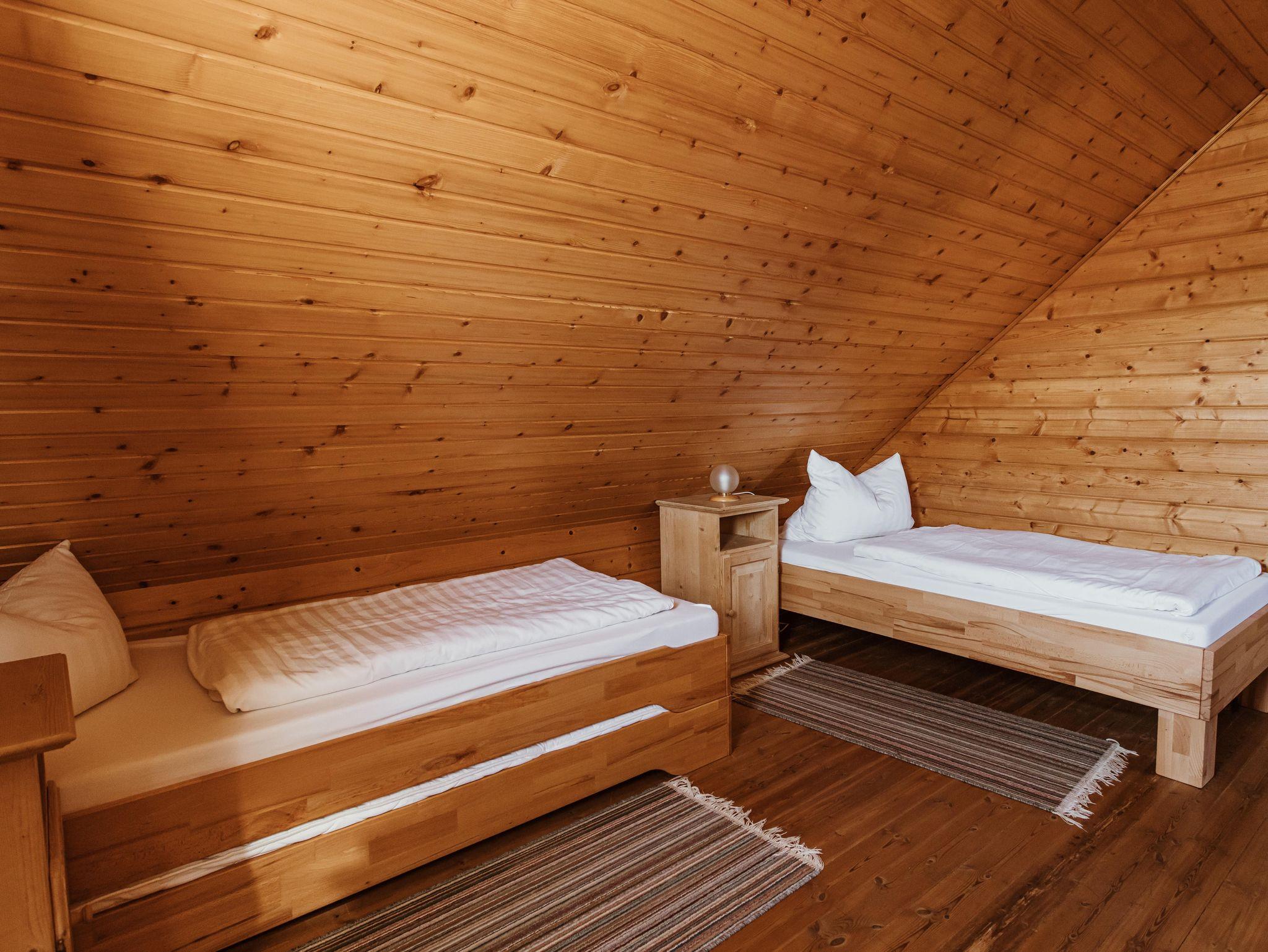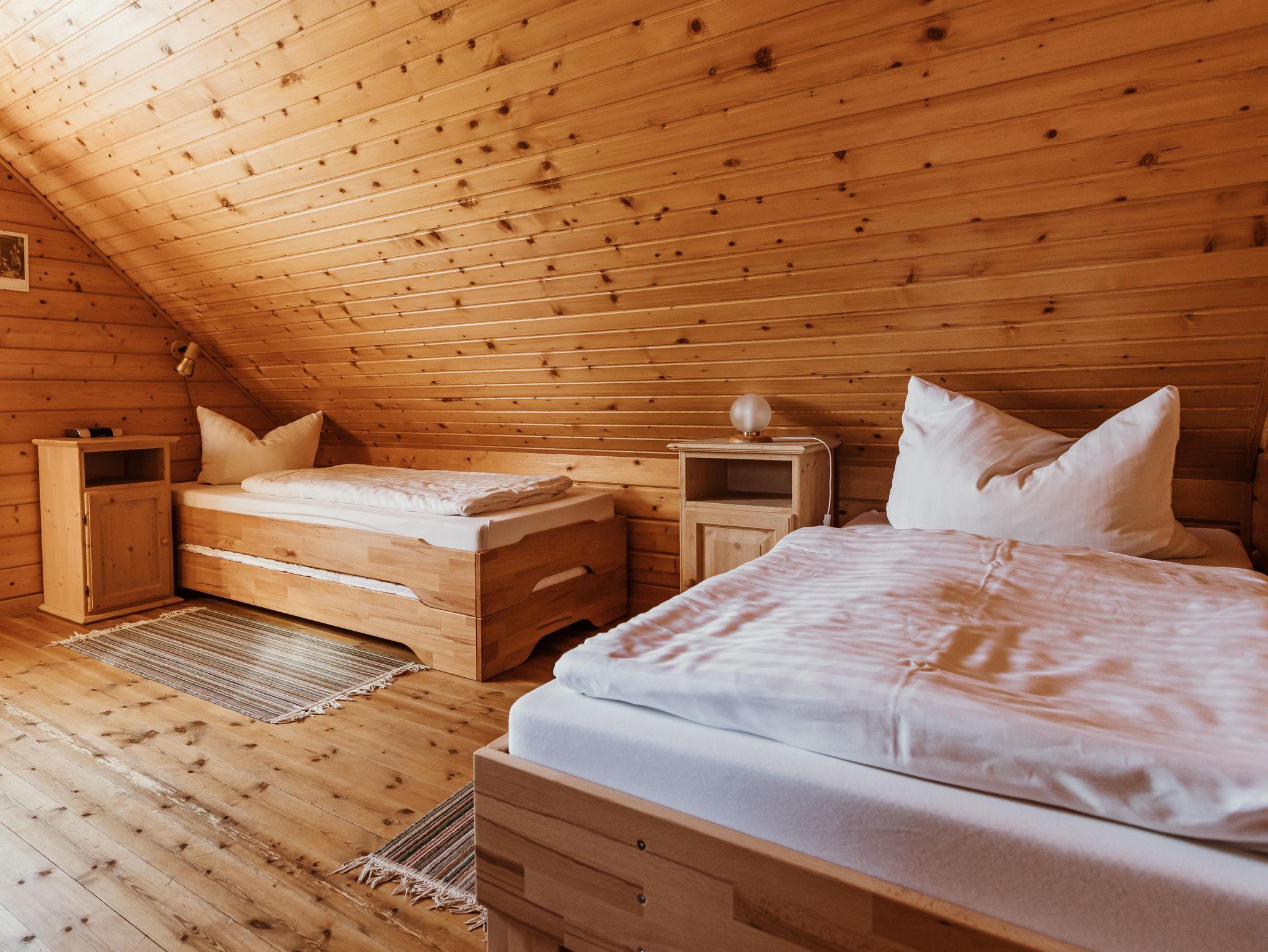 Das Dachgeschoss umfasst zwei Schlafzimmer ? eines mit Doppelbett und eines mit zwei separaten Betten ? sowie ein Bad mit Dusche und WC.
