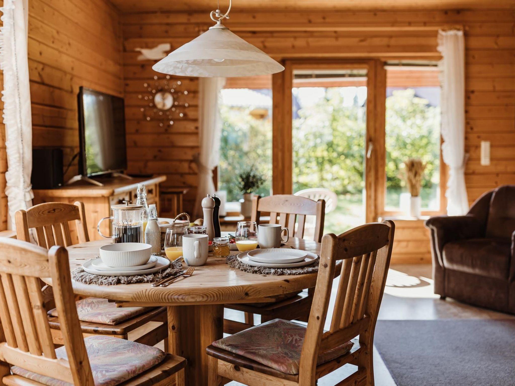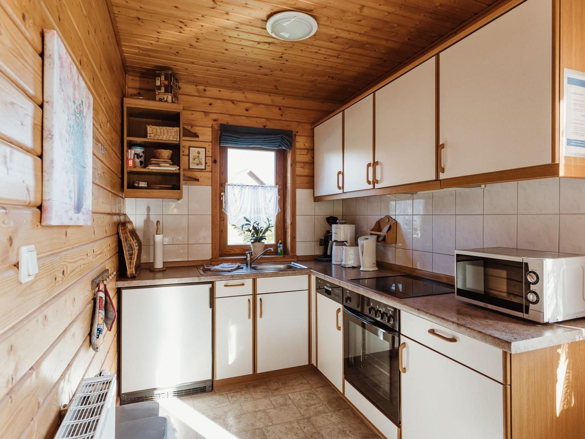 Die Doppelhaushälfte in Holzbauweise verfügt über drei Zimmer auf rund 65 m² Wohnfläche und bietet Platz für bis zu sechs Personen. Im Erdgeschoss befindet sich ein großzügiger Wohnbereich mit Schlafcouch, separatem Essplatz, SAT-TV mit Sky, voll ausgestatteter Küchenzeile, Abstellraum und Gäste-WC. WLAN steht kostenfrei zur Verfügung, ebenso ein Kinderhochstuhl.