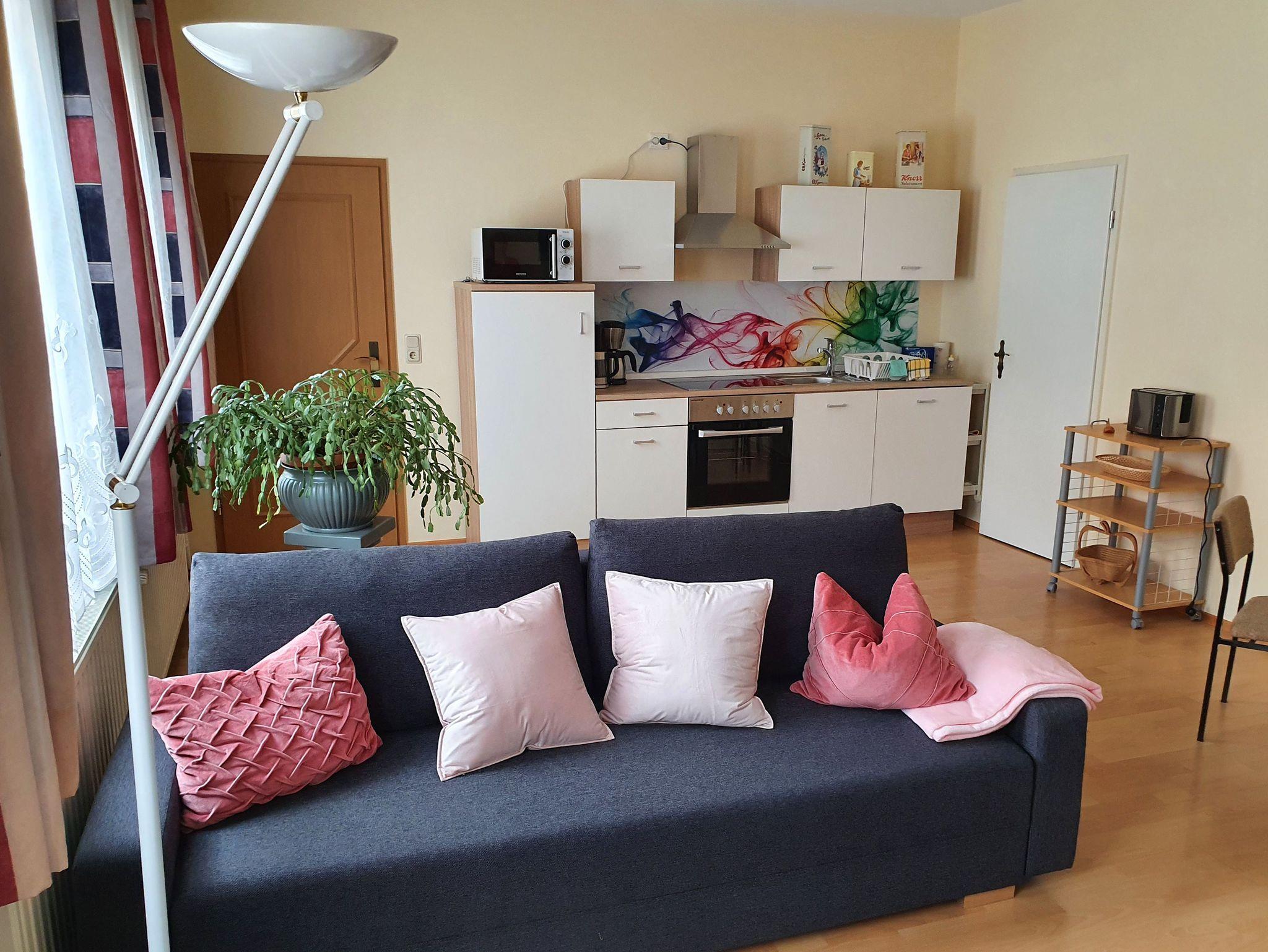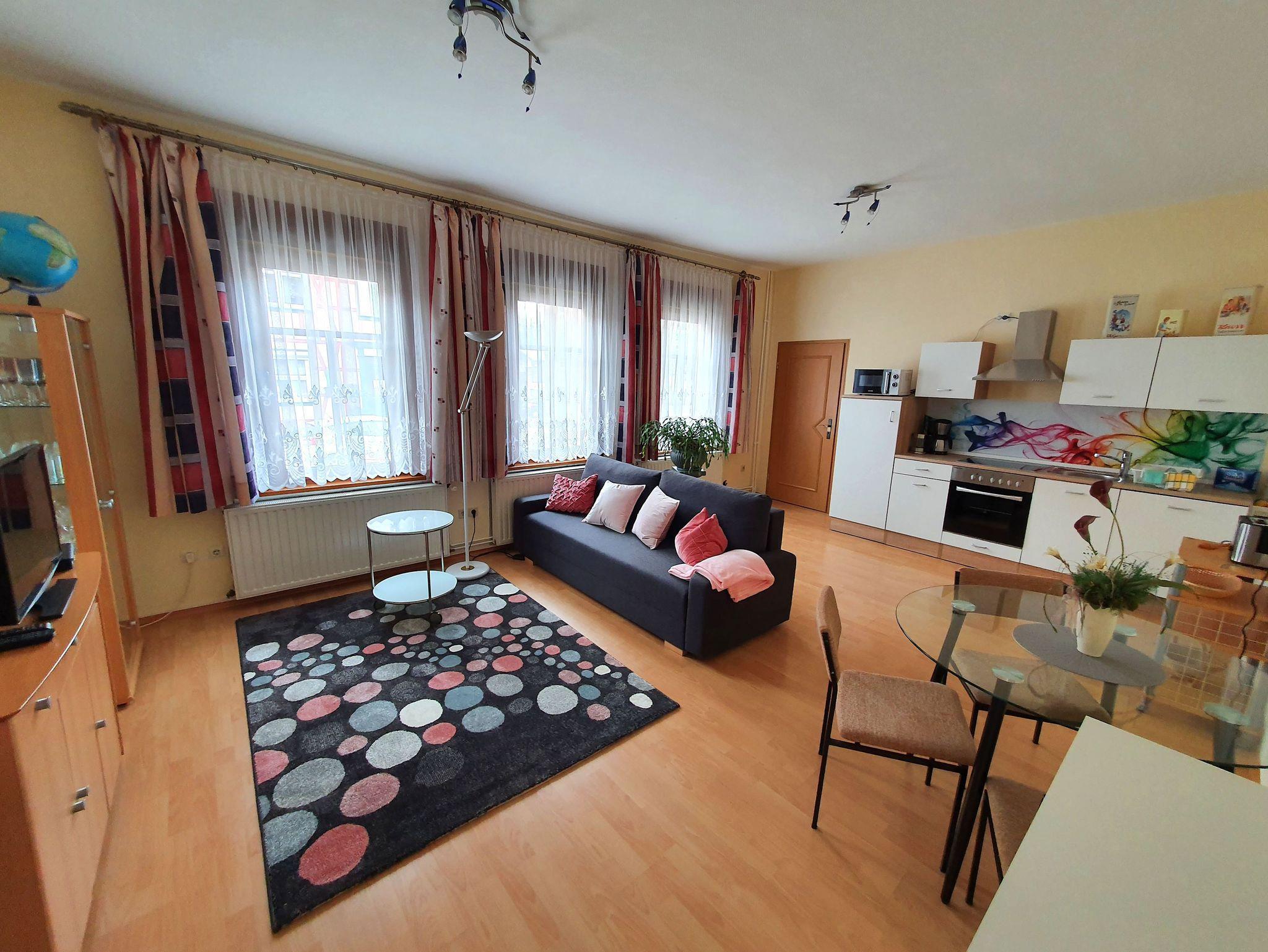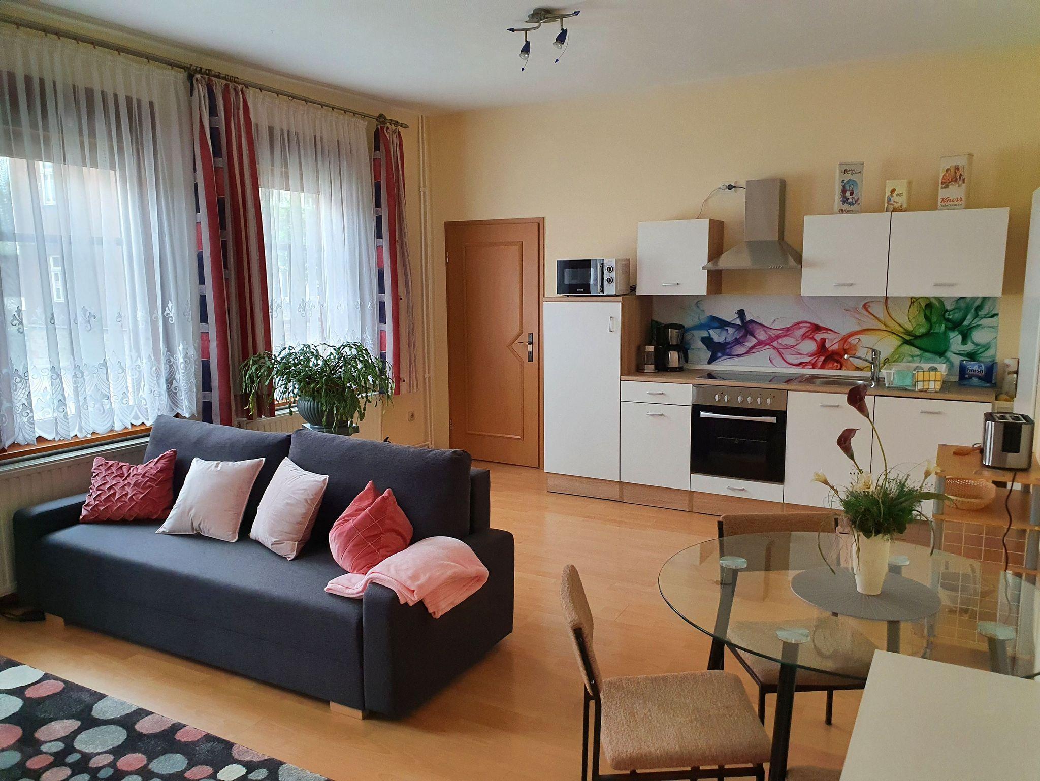 Mitte im Zentrum, in einer Nebenstraße heißen wir Sie in unserer neuen 45 m² großen 2-Raum-Nichtraucher Ferienwohnung herzlich willkommen. Die Wohnung ist ideal für 2 Personen oder einer Familie mit 2 Kindern und verfügt über ein Wohnzimmer mit offener Küche und einem Schlafzimmer.