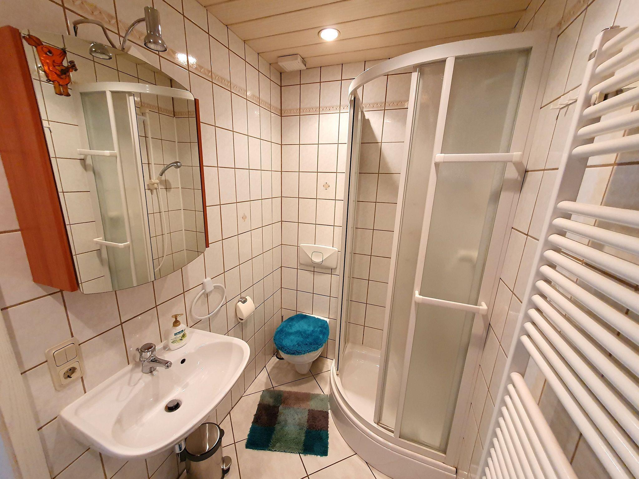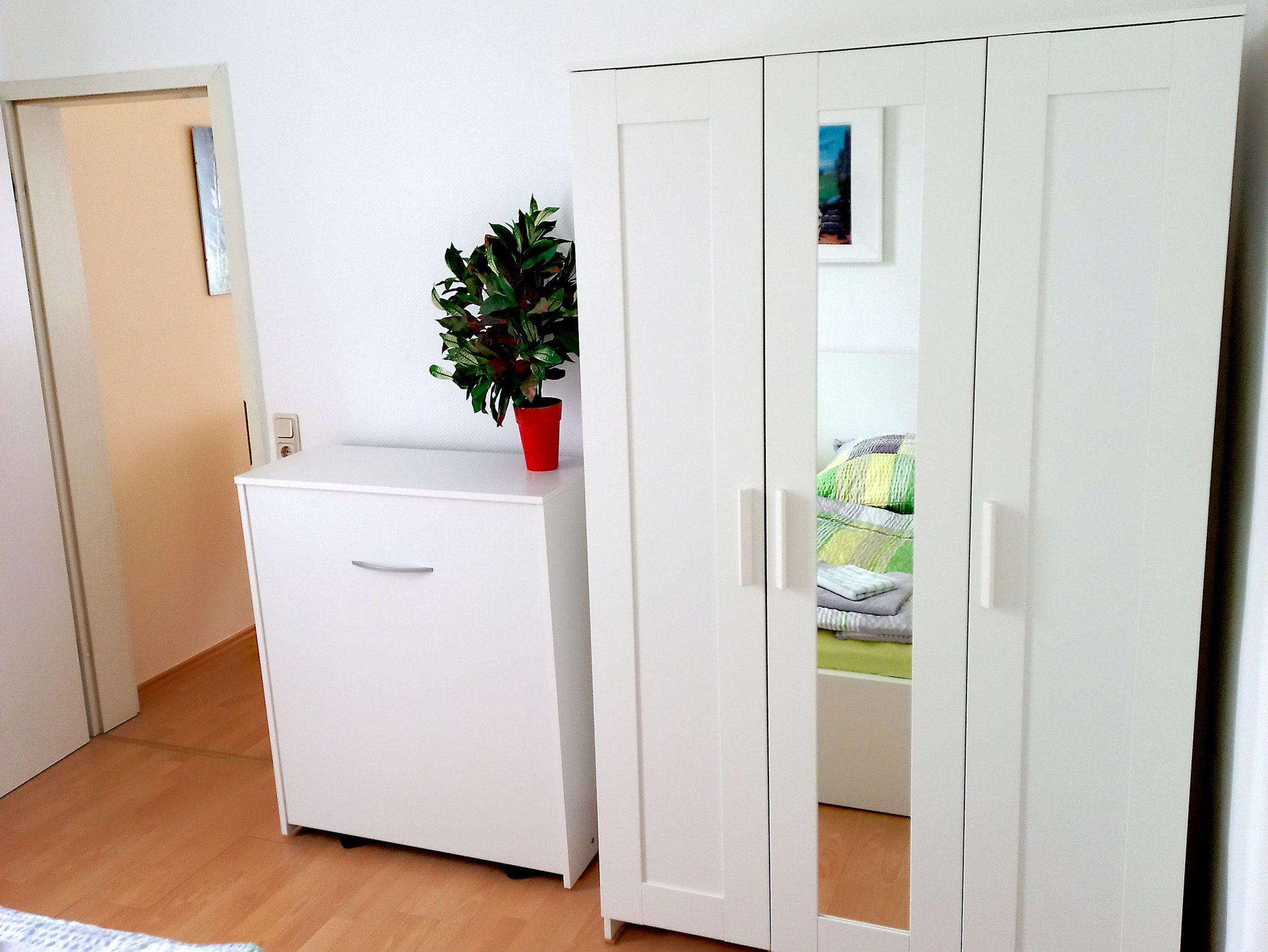 Unsere Nichtraucher-Ferienwohnung befindet sich im Erdgeschoss des 2-Familien-Hauses. Über den Eingangsbereich mit Treppenflur erreichen Sie die separate Wohnung. Ein großes, helles und modernes Wohnzimmer mit integrierter Küchenzeile und Essecke lädt zum Verweilen ein. Ein bequemes Schlafsofa bietet die Möglichkeit der Aufbettung für Ihre Kinder oder Enkelkinder. Zusätzlich steht Ihnen noch eine Aufbettung in Form eines Schrankbettes zur Verfügung. Die Küchenzeile hat alles, was Ihren Urlaub bei uns angenehm gestaltet. Vom Backofen mit Cerankochfeld, Kühlschrank mit Gefriermöglichkeit, einer Mikrowelle, einem Geschirrspüler bis hin zur Kaffeemaschine ist alles vorhanden. Das Schlafzimmer verfügt ein Doppelbett (1,80 x 2,00 m) und einen Kleiderschrank. Das Bad ist innenliegend und mit einer Dusche ausgestattet. Leider können wir Ihnen auf dem Grundstück keinen Parkplatz zur Verfügung stellen. Am Haus direkt befinden sich kostenlose öffentliche Parkflächen.