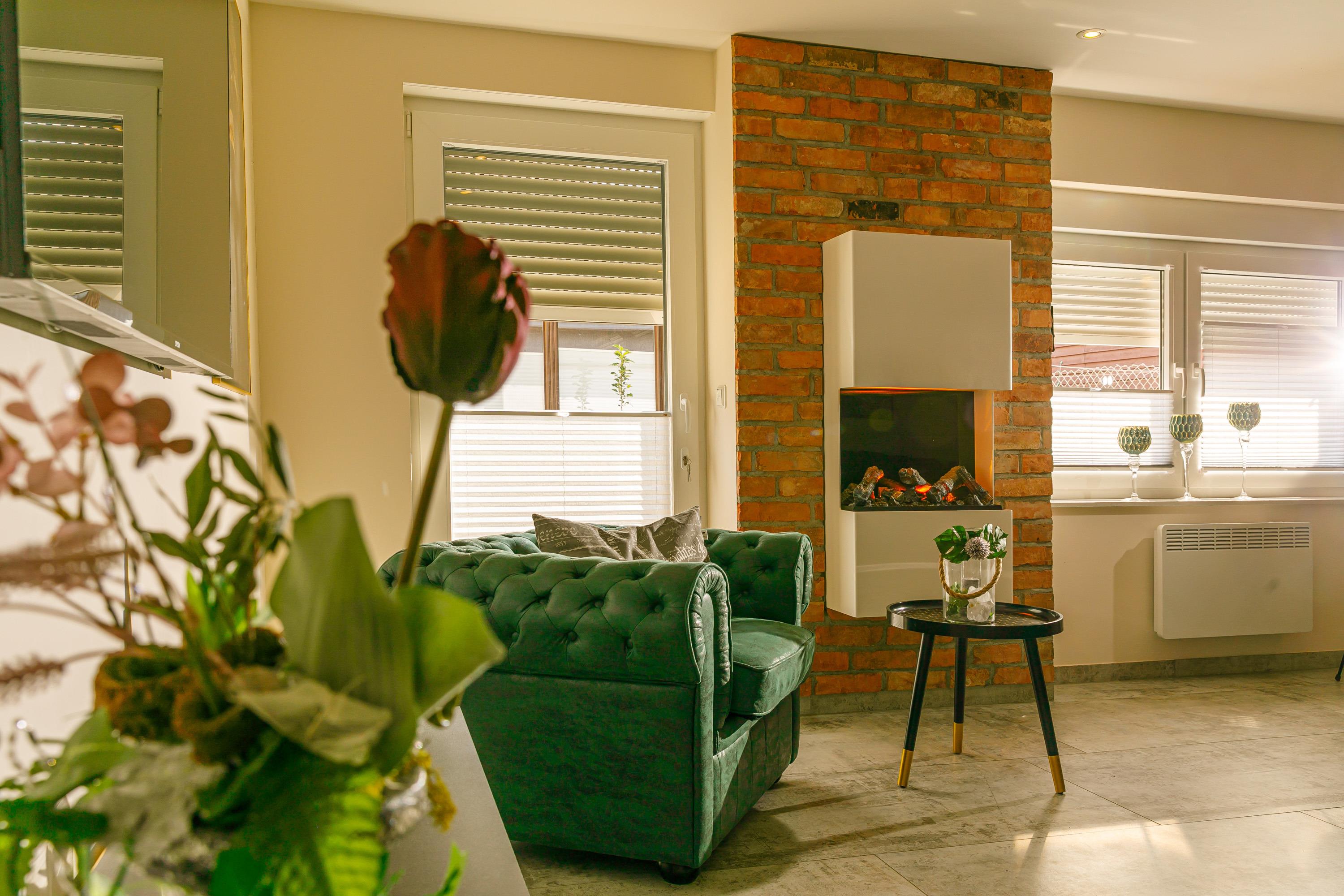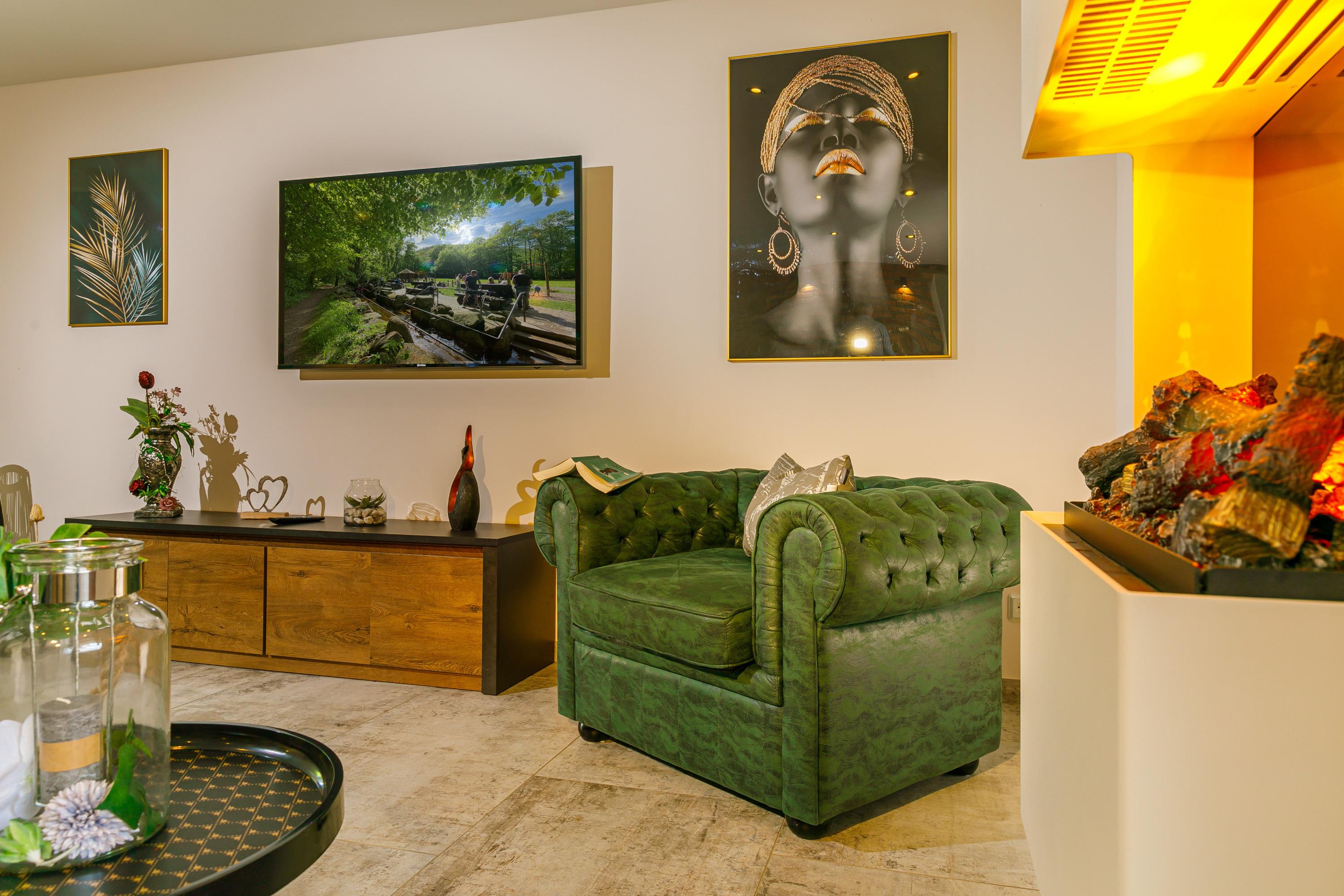 - NEU: Wohnzimmer mit einer großzügigem Ausziehcouch mit Platz für 8 Personen, großen Flat- TV, virtuellen Kamin etc.