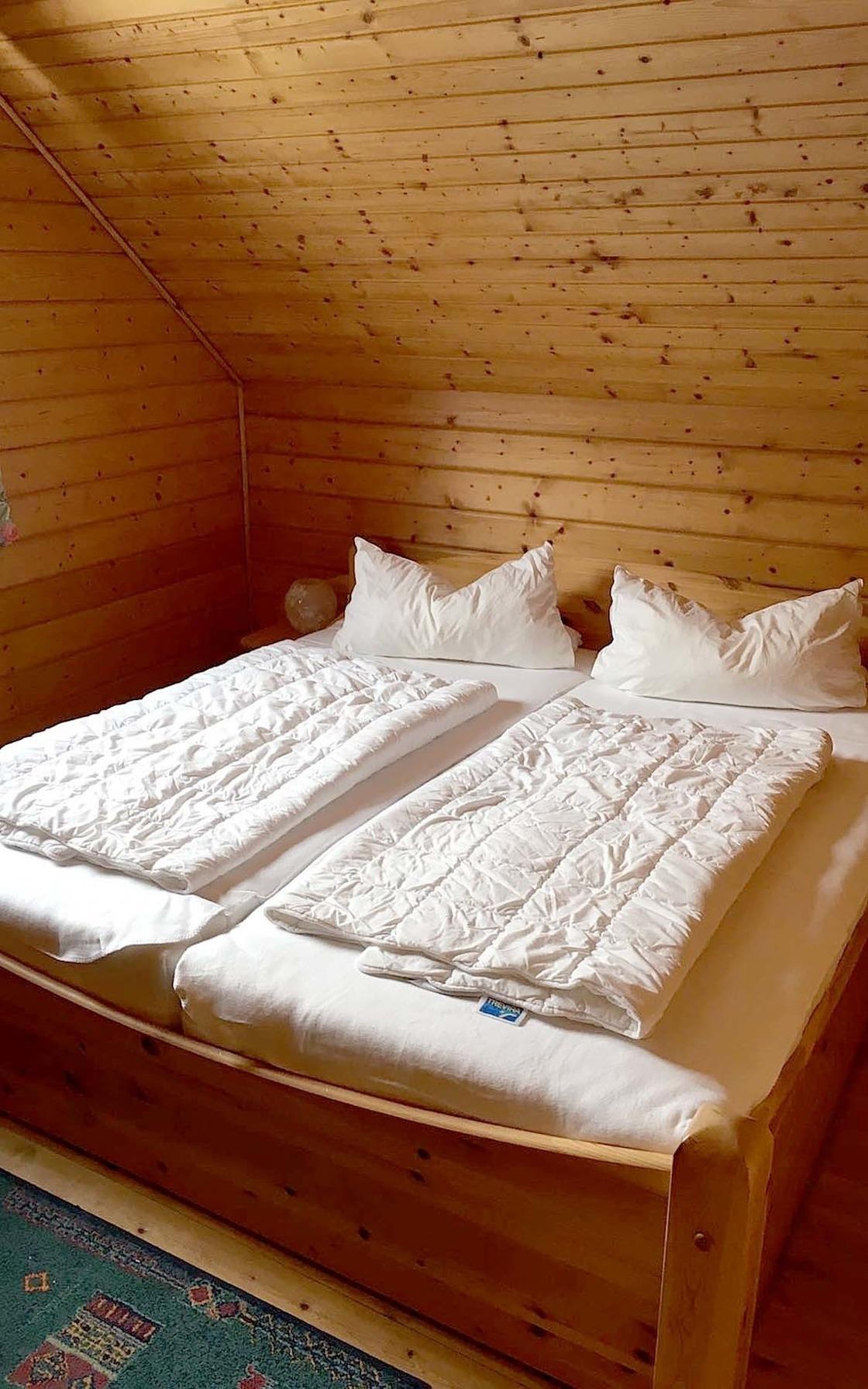 Im Dachgeschoss sind zwei Schlafzimmer mit je einem Doppelbett sowie ein Duschbad mit WC.