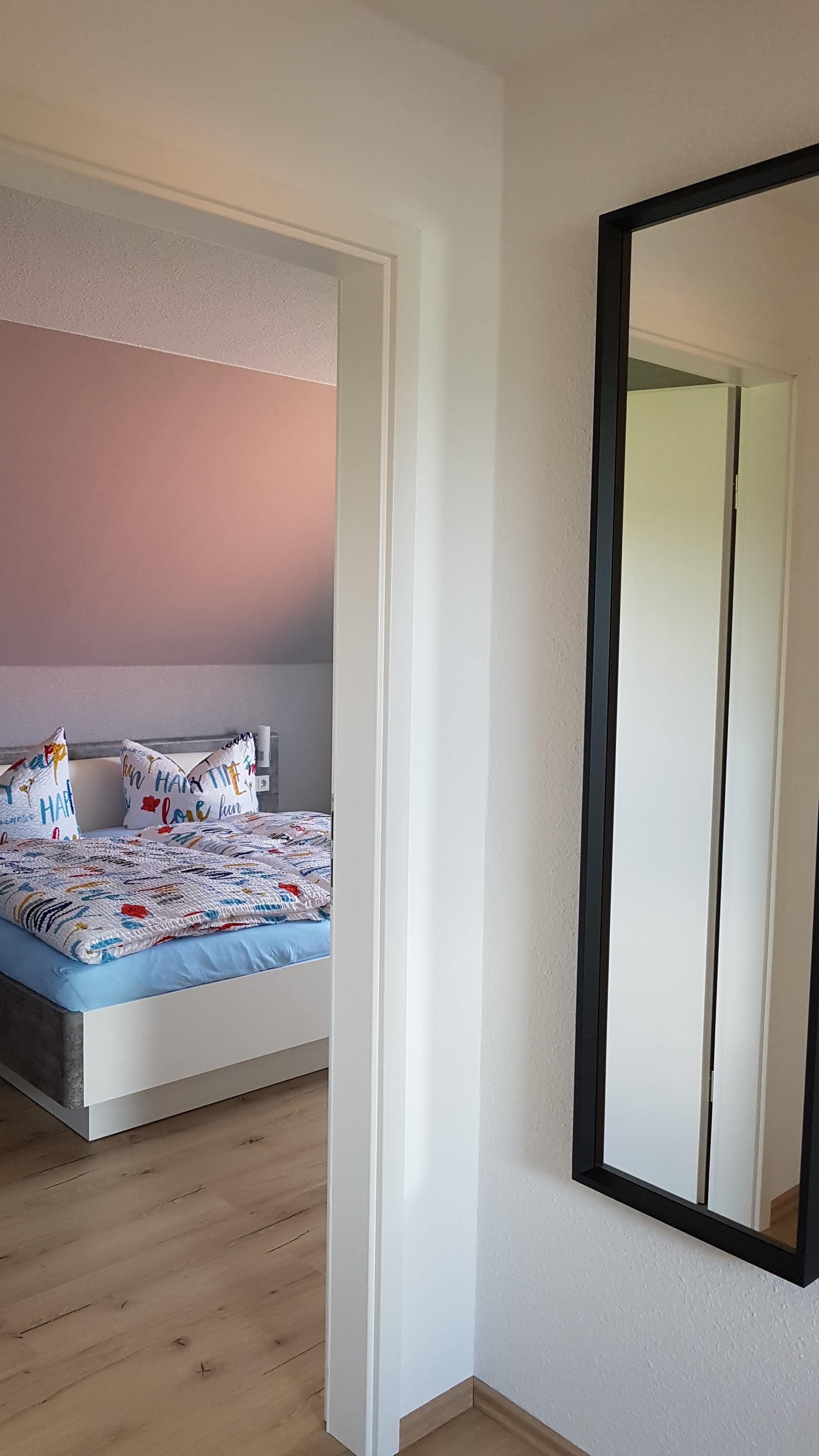 Doppelbett, zusätzliche Aufbettungsmöglichkeit, Kleiderschrank.