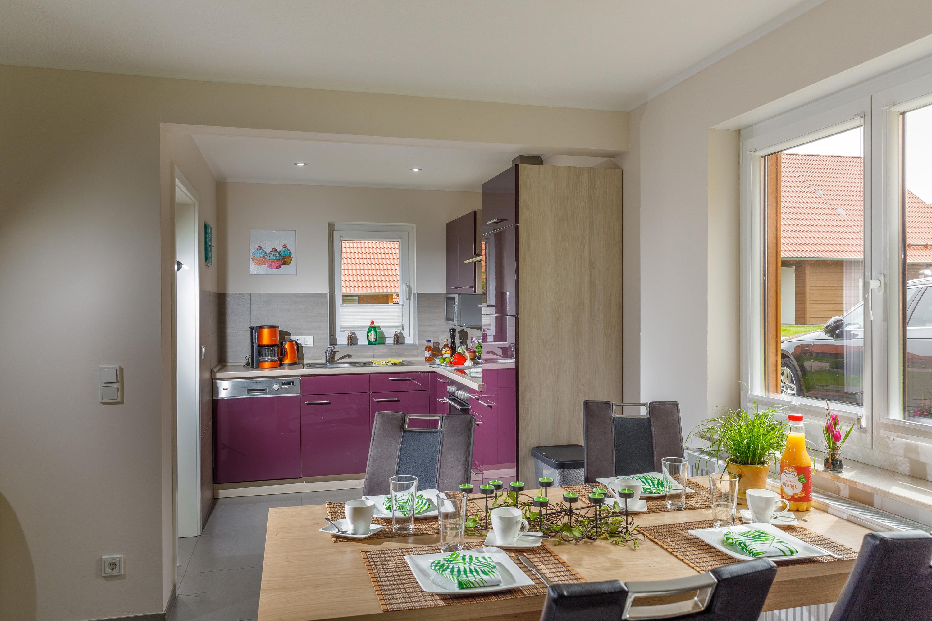 mit Geschirrspüler, Ceranherd mit Backofen, Mikrowelle, Kühl-/Gefrierkombination, Toaster, Kaffeemaschine, Padmaschine und vielem mehr.