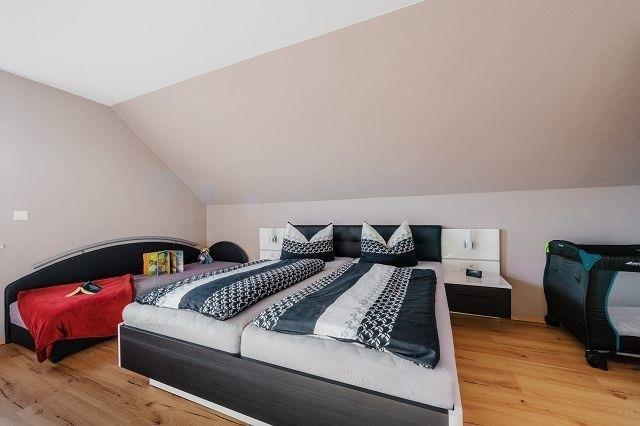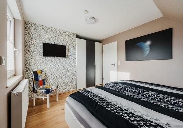 Doppelbett, zusätzliche Aufbettungsmöglichkeit, Kleiderschrank.