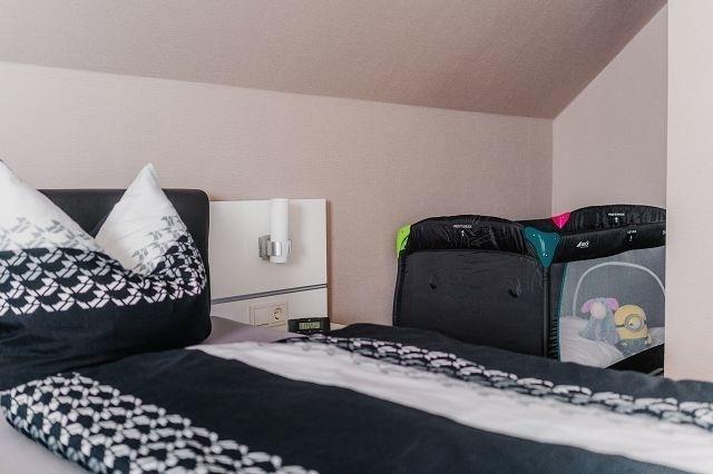 Für unsere kleinsten Gäste stehen kostenlos ein Kinderbett mit zusätzlicher Matratze sowie ein Hochstuhl bereit.
