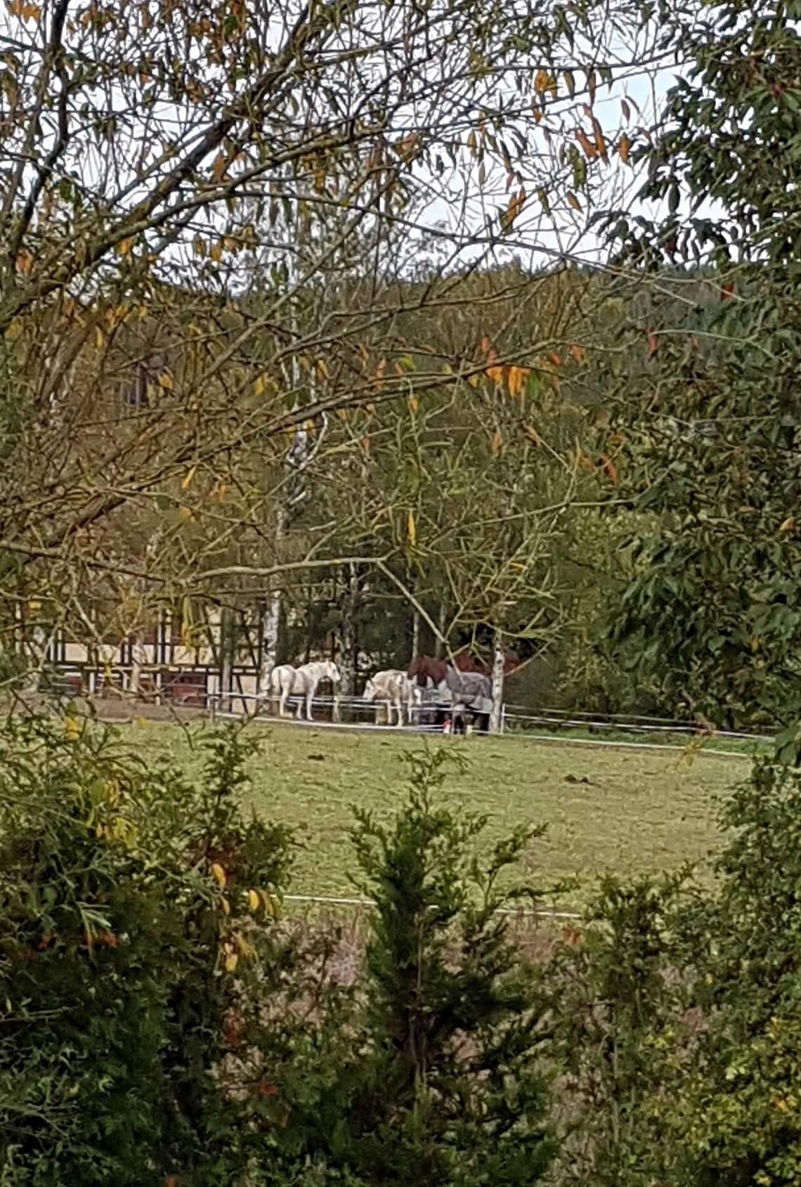• Ruhige Terrasse mit angrenzendem Garten und Blick auf eine Pferdekoppel