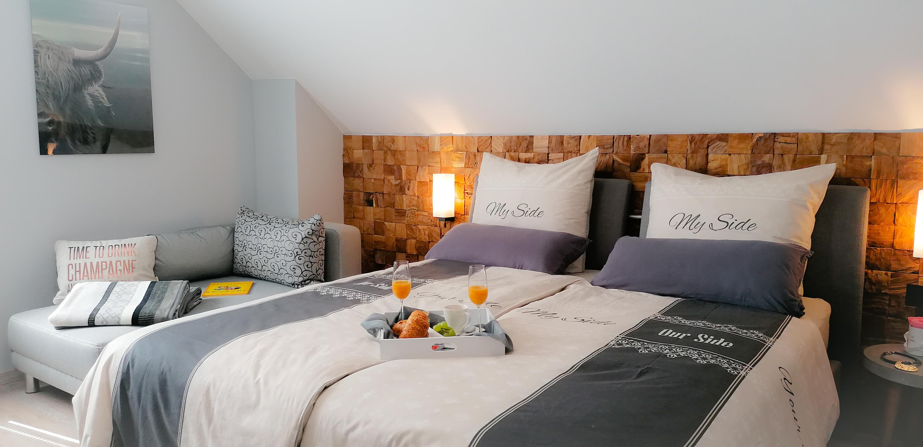 Sollten Sie Bettwäsche und Handtücher nicht mitbringen wollen und auch noch nicht gebucht haben, dann können wir Ihnen Bettwäsche und Handtücher (1 Duschtuch und 1 Handtuch pro Person) nachträglich noch zur Verfügung stellen. Dies ist bis 1 Tag vor Anreise noch möglich. Wenn Sie selber Bettwäsche mitbringen möchten, dann denken Sie an Spannbettlaken für ein Doppelbett 1,80 x 2,00 m, da wir in den beiden Schlafzimmern Boxspringbetten mit hohem Steg haben. Es fallen KEINE weiteren Nebenkosten bei uns an.
