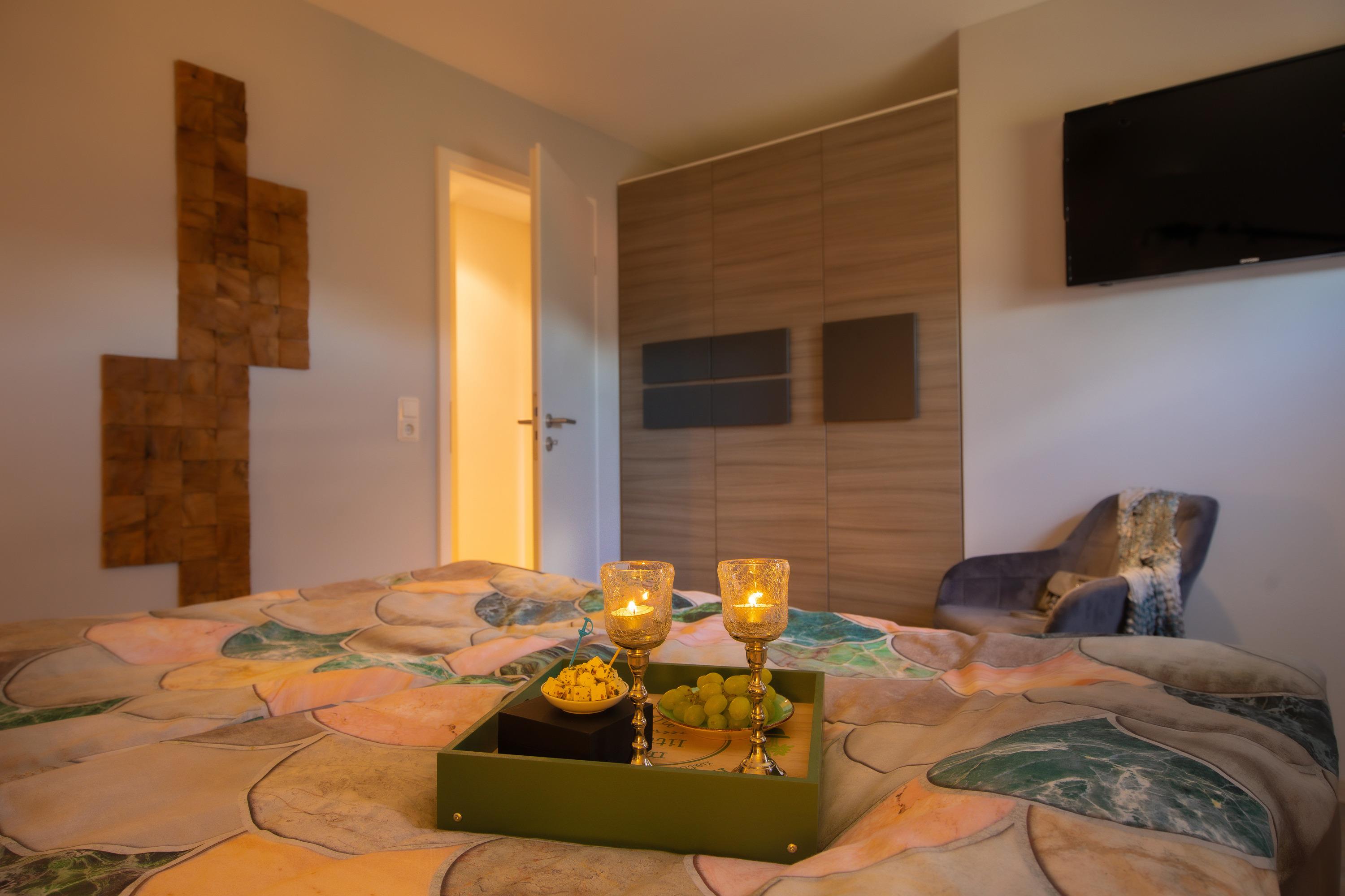 1 Schlafzimmer mit Doppelbett- Boxspringbett, 1 Liege, Kleiderschrank, SAT-TV