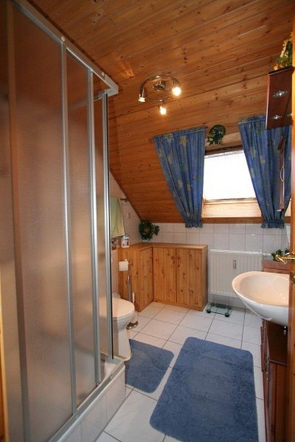 Im Dachgeschoss ist 1 Schlafzimmer mit zwei Einzelbetten, 1 Schlafzimmer mit Doppelbett, sowie ein Badezimmer mit Dusche, Waschtisch und WC.