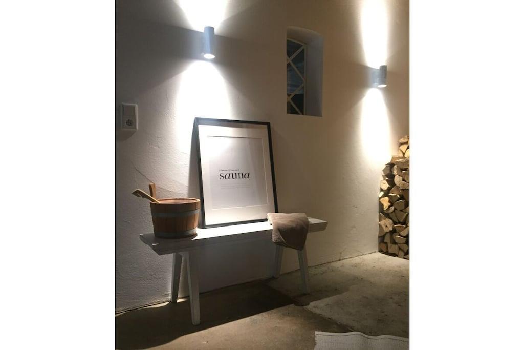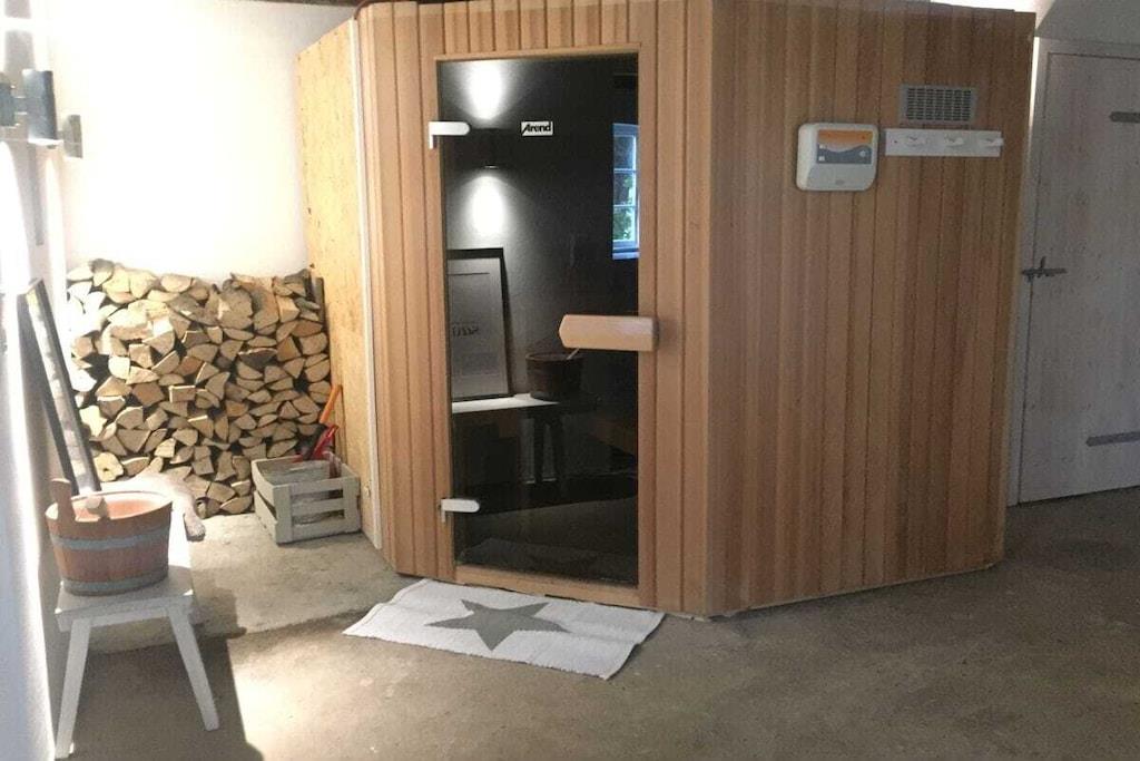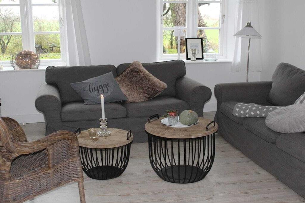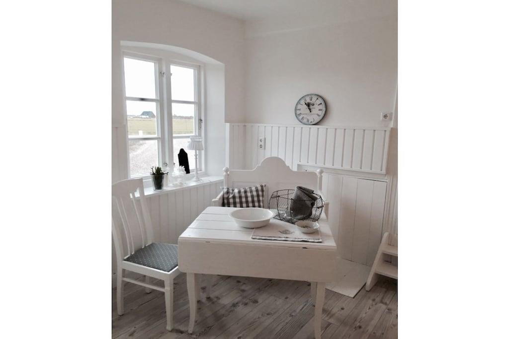 Første etasje: (Stue(, , TV, vedovn, radio, CD-spiller), oppbevaringsrom(, badstue, tørketrommel, vaskemaskin, høy barnestol, strykebrett, strykejern, tørkeskap)) , , , Kjøkken(, spisebord, komfyr med kokeplater, vannkoker, brødrister, kaffetrakter, stekovn, oppvaskmaskin, kjøleskap, fryser), soveværelse(, , enkeltseng, enkeltseng, dobbeltseng), soveværelse(, , enkeltseng, enkeltseng, dobbeltseng), bad(, WC, dusj, håndvask, Hårtørker), Internett-tilgang, Internett-tilgang, Førstehjelp, tørketrommel, vaskemaskin, terrasse(, Strand, Plen, grill, hagemøbler, bordfotball), parkering, parkering, strykebrett, strykejern, tørkeskap