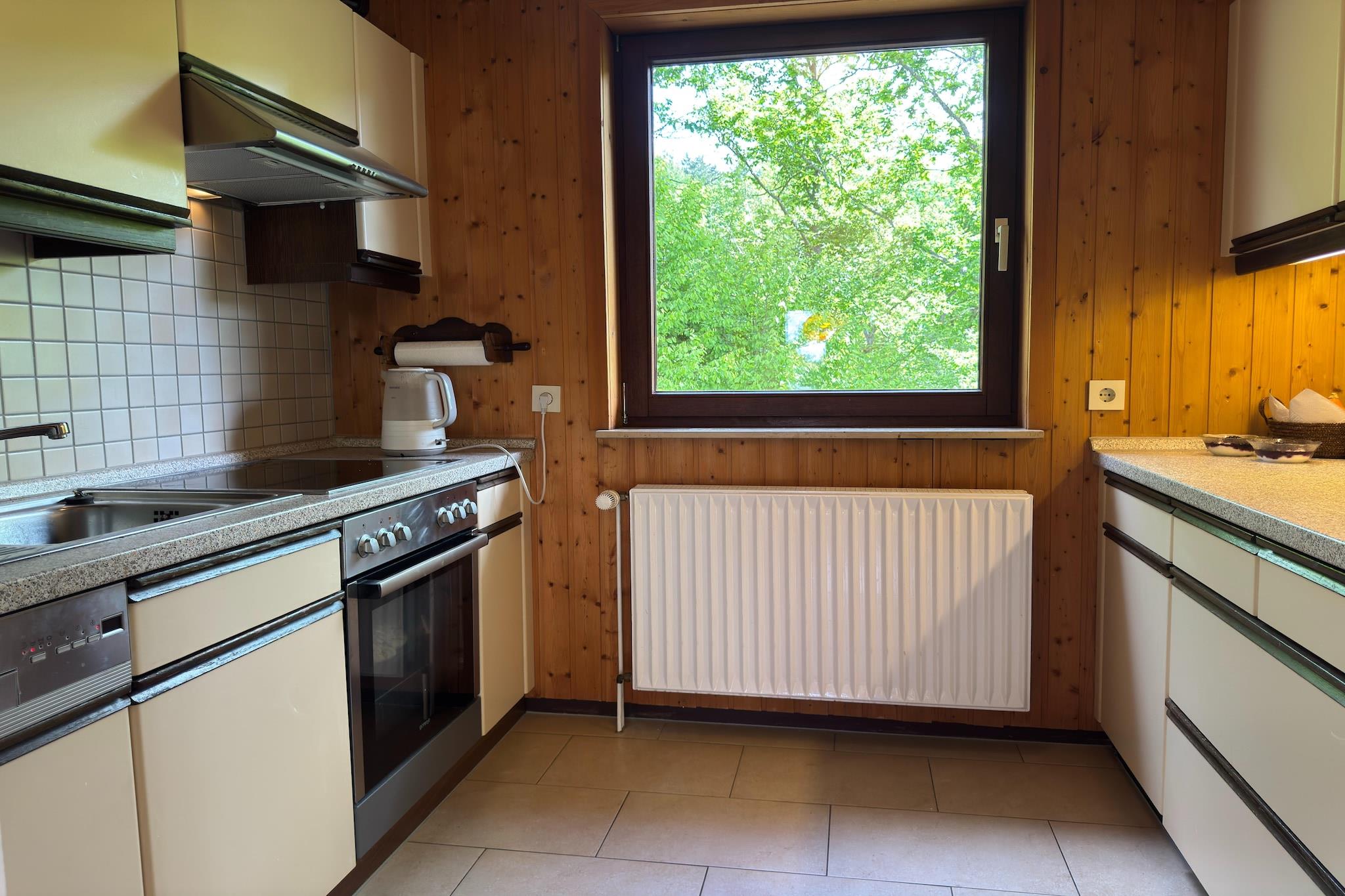 Det romslige, renoverte og nyinnredede feriehuset vil overbevise deg med sin sjenerøse planløsning i to etasjer og 110 kvadratmeter. Den rolige beliggenheten til huset bygget i skråningen er ideell for å trekke styrke og energi. Fra den store, overbygde balkongen i 1. etasje og 2. avdekket balkong i 2. etasje og ulike terrasser har du en idyllisk utsikt over skogstomten. Herfra kan du nyte den vakre utsikten over Edertal og det 673 meter høye fjellet "Sackpfeife". Hatzfeld ligger i den typiske lave fjellkjeden i Oberedertal. De høyeste toppene her stiger til 674 meter (sekkepipe). I alle årstider er det alltid fantastiske perspektiver å oppdage. Bruk tiden med for eksempel en kanotur eller fiske. Byen og det tilstøtende distriktet Waldeck-Frankenberg tilbyr sine besøkende en rekke fritidsaktiviteter. Detaljer: WiFi Aktiviteter i nærheten: Hessische Bergenland tilbyr et bredt spekter av fritidsaktiviteter både sommer og vinter. Det vakre landskapet er ideelt for fotturer eller stavgang. Stiene er meget godt merket og sist men ikke minst har de blitt tildelt en pris fra det tyske turinstituttet. Sykkelstien Ederauen (200 km) går direkte gjennom landsbyen 1 km unna, eller sekkepipen med sommerakebakke er bare åtte kilometer unna. Edertalsperre og Waldeck Castle, 60 kilometer unna, eller Bad Berleburg, Marburg og Frankenberg er også verdt et besøk. Det er også mye å oppleve i det velkjente vintersportområdet Winterberg Ikke egnet for bevegelseshemmede