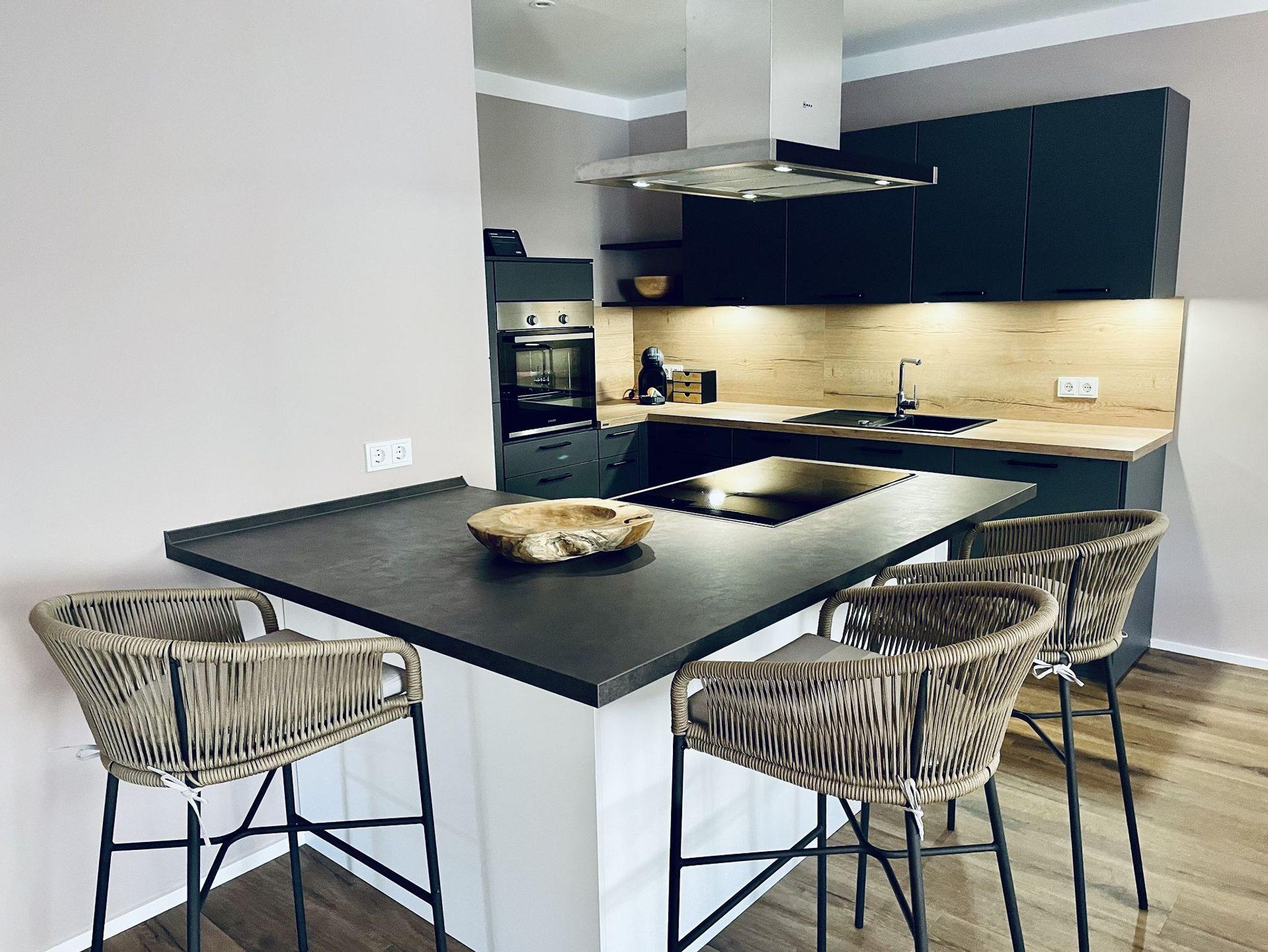 Servus und Hallo in unserer fewo5, die sich direkt neben der fewo4 befindet und trotz ihrer zentralen Lage eine sehr private Atmosphäre bietet. Das Highlight dieser Wohnung ist das großzügige und offene Wohnzimmer mit einer einladenden Küche und einer Kochinsel, die den Wohnraum verbindet. Hier könnt ihr wunderbare Stunden und Abende in gemütlicher Gemeinschaft verbringen.