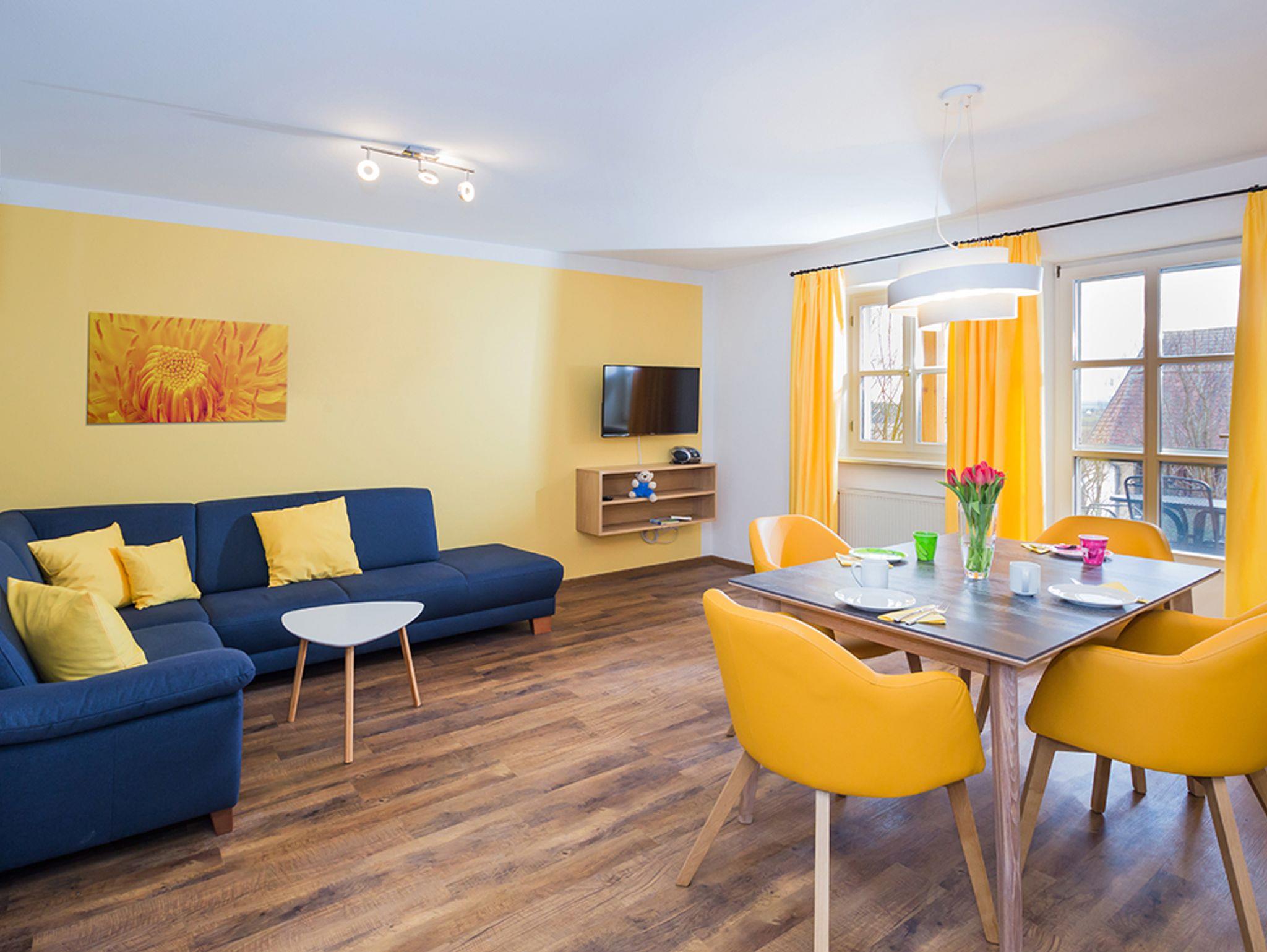 Richtig modern wohnen Sie in unserer Löwenzahnwohnung im historischen Bauernhaus. 75 qm Wohnfläche im Erdgeschoss bieten Ihnen jede Menge Platz für einen erholsamen Urlaub. Die Wohnung ist für bis zu 4 Personen bestens geeignet und verfügt auch über ein separates Kinderzimmer. Genießen Sie auf der sonnigen Terrasse den Duft des blühenden Lavendels. Ihre Kinder oder Enkel gehen von der Terrasse direkt auf unseren großen Spielplatz auf Entdeckungstour. Die moderne und hochwertige Ausstattung der Wohnung garantiert Ihnen einen F****-Sterne-Komfort (DTV).