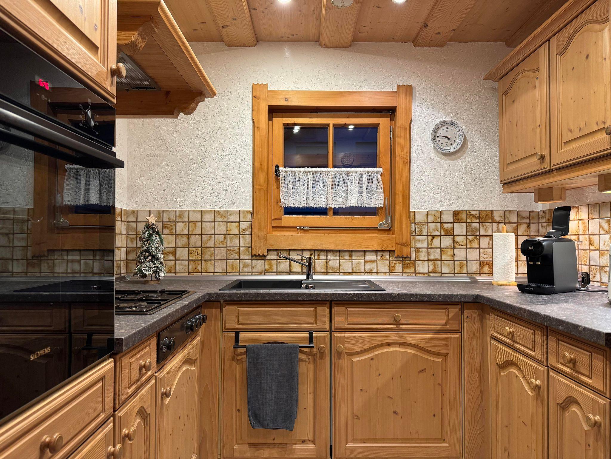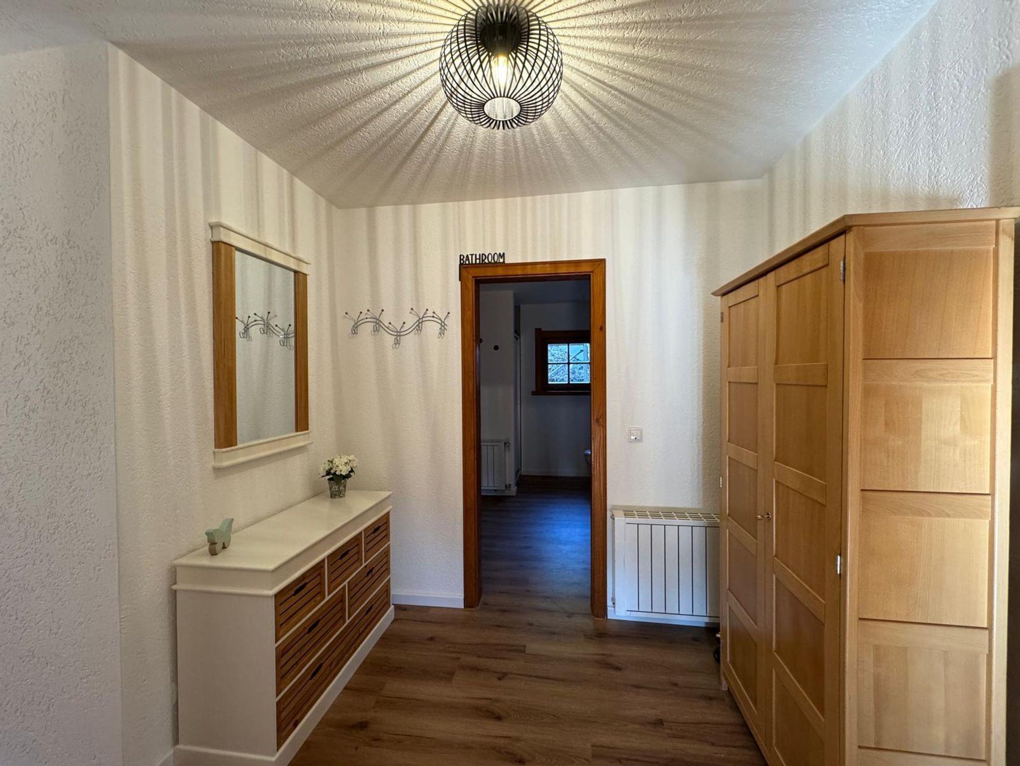 Das Chalet verfügt über zwei Schlafzimmer, einen großzügigen Wohnbereich mit Galerie und Essecke, ein Badezimmer mit Dusche und WC, eine komplett eingerichtete Küche und einen Balkon zur Südseite mit herrlicher Aussicht.
