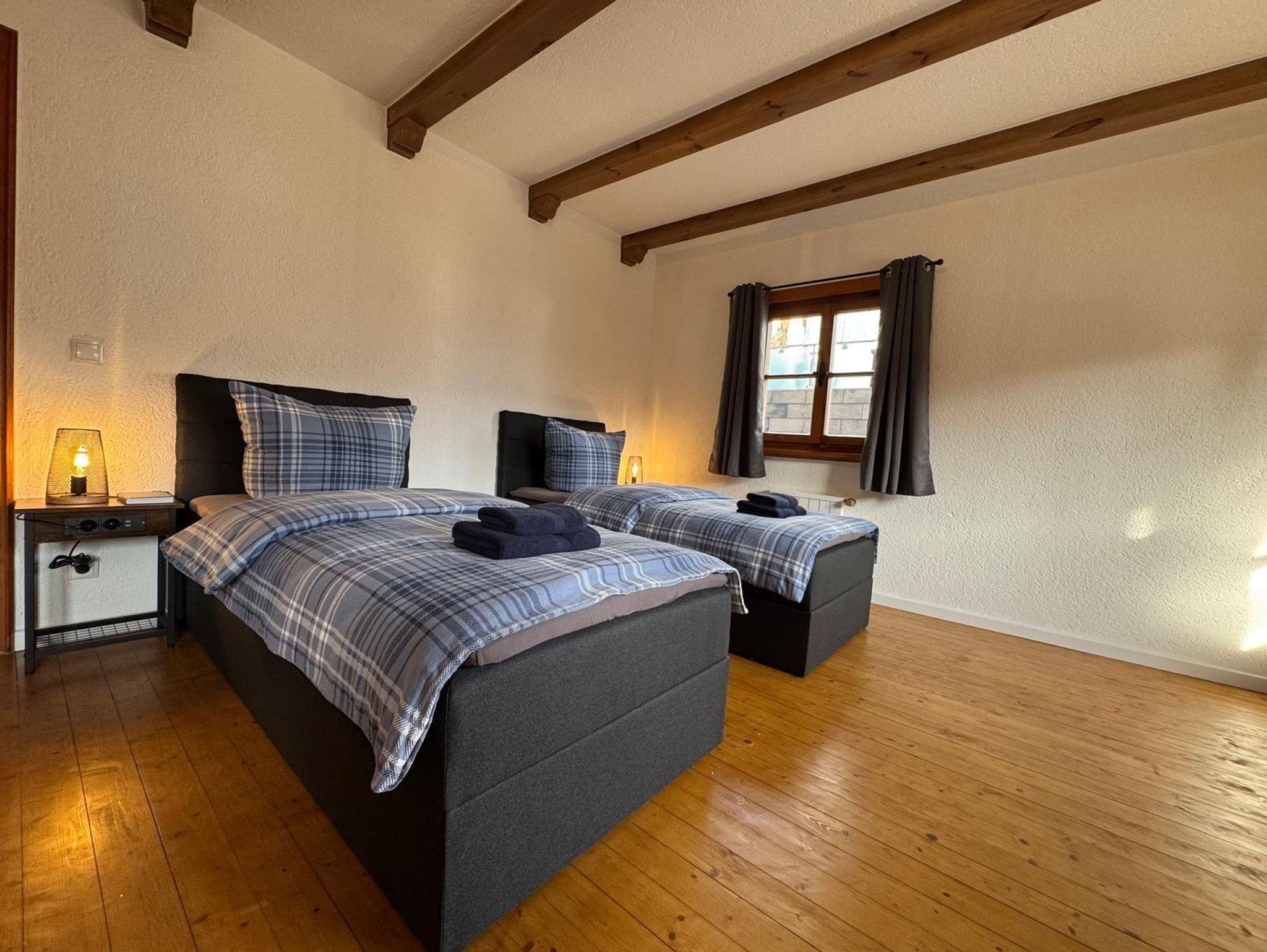 Jedes Schlafzimmer ist mit zwei komfortablen Einzel-Boxspringbetten ausgestattet – ideal für erholsame Nächte. Ausserdem bieten wir einen Tisch mit zwei Stühlen um flexibel die Mahlzeiten im Eigenen Zimmer einnehmen zu können. Die Smart TV‘s sind unter anderem mit Waipu-TV ausgestattet, sodass Sie den gemütlichen Fernsehabend in vollen Zügen genießen können.