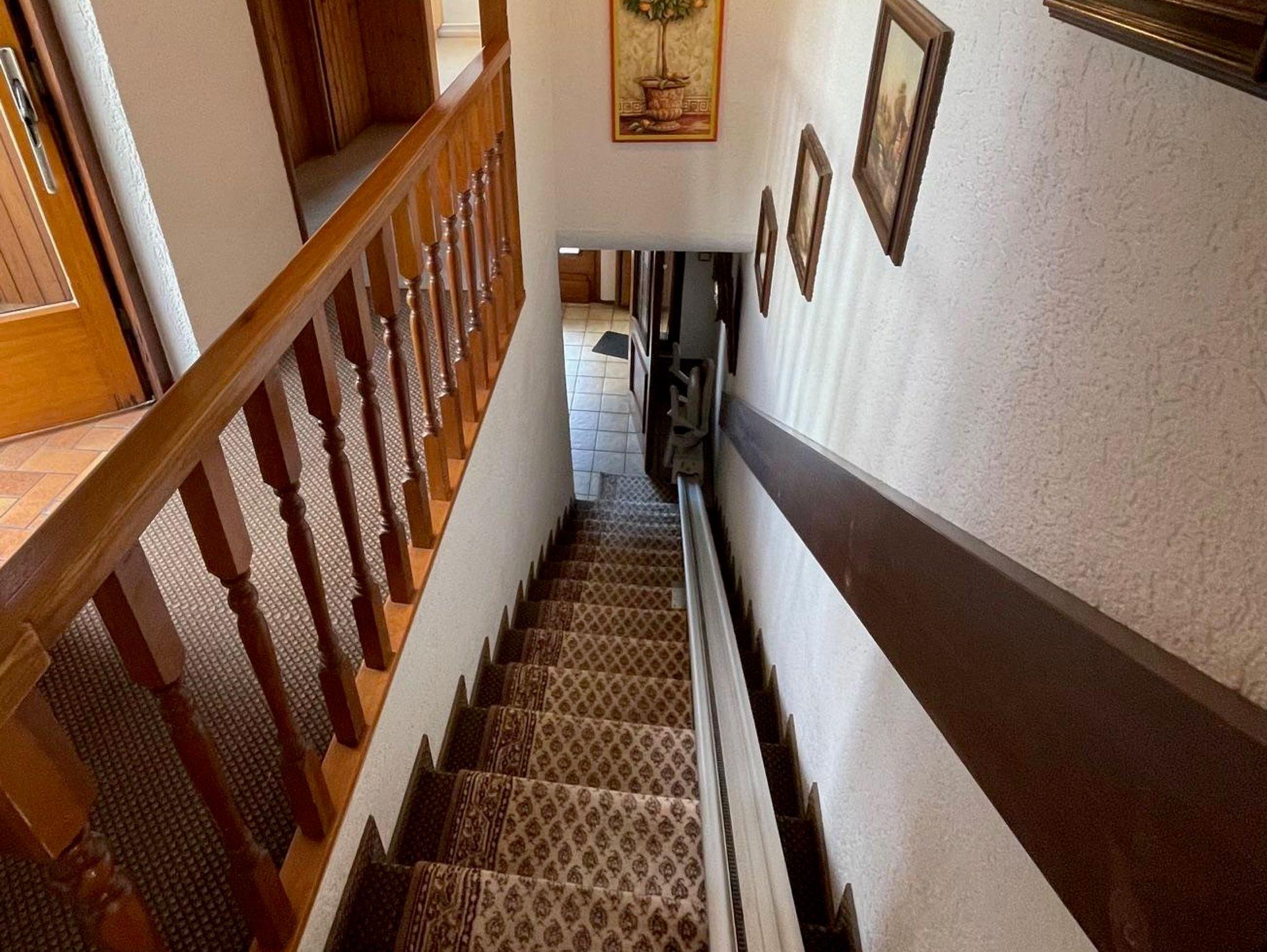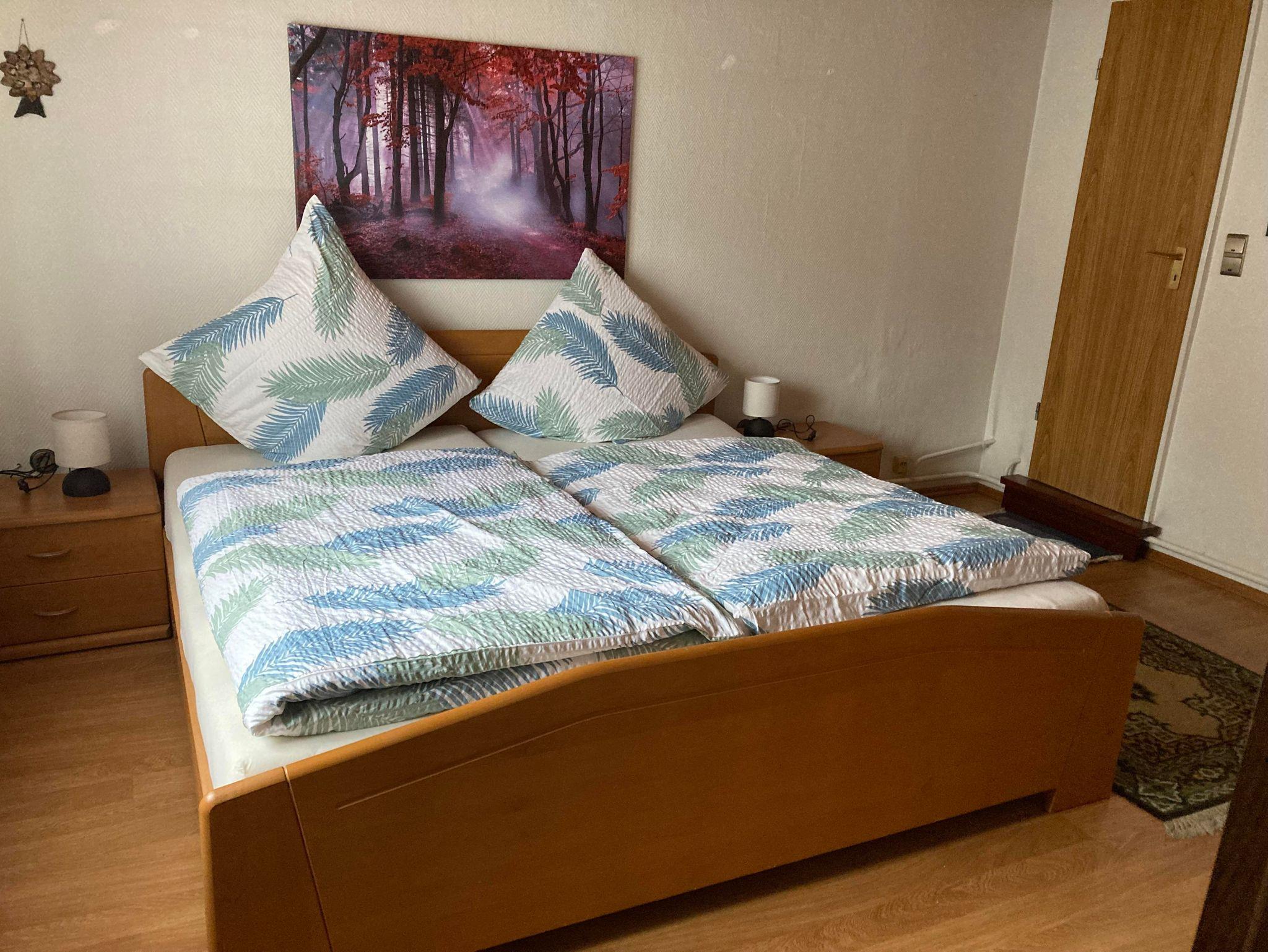 Im Erdgeschoss befindet sich ein Schlafzimmer für zwei Personen mit angeschlossenem Bad. Außerdem ein separates WC. Im Obergeschoss befindet sich ein Doppelschlafzimmer, eine voll ausgestattete Küche, eine kleines Nebenzimmer und das große Wohn-Esszimmer. In der Küche finden die Gäste Kaffeemaschien, Wasserkocher, Toaster, Mixer, Backofen, Herd und Kühlschrank mit Gefrierfach (keine Spülmaschine). SAT-TV. Kein WLAN. Mit Rolläden in allen Zimmern.