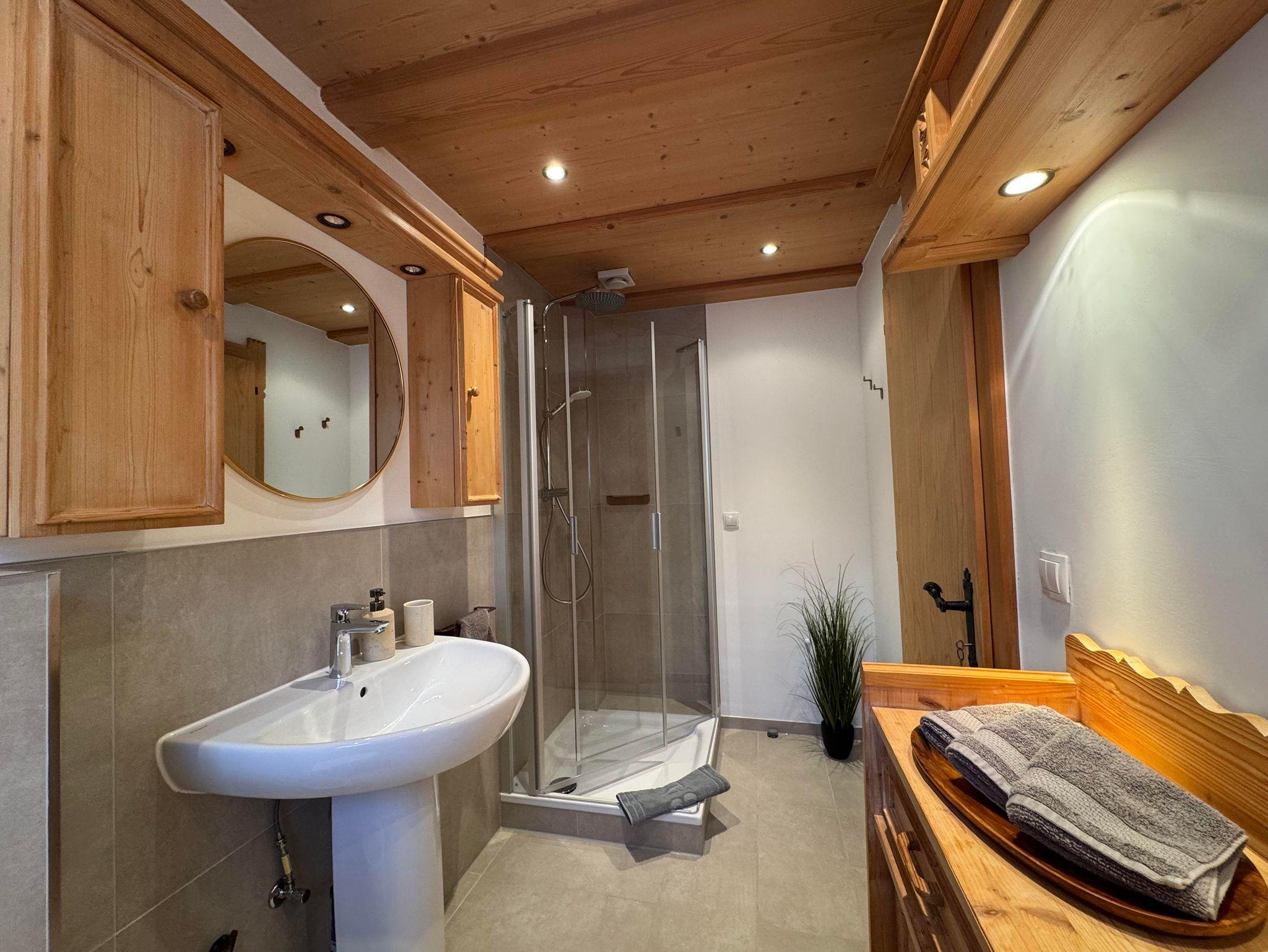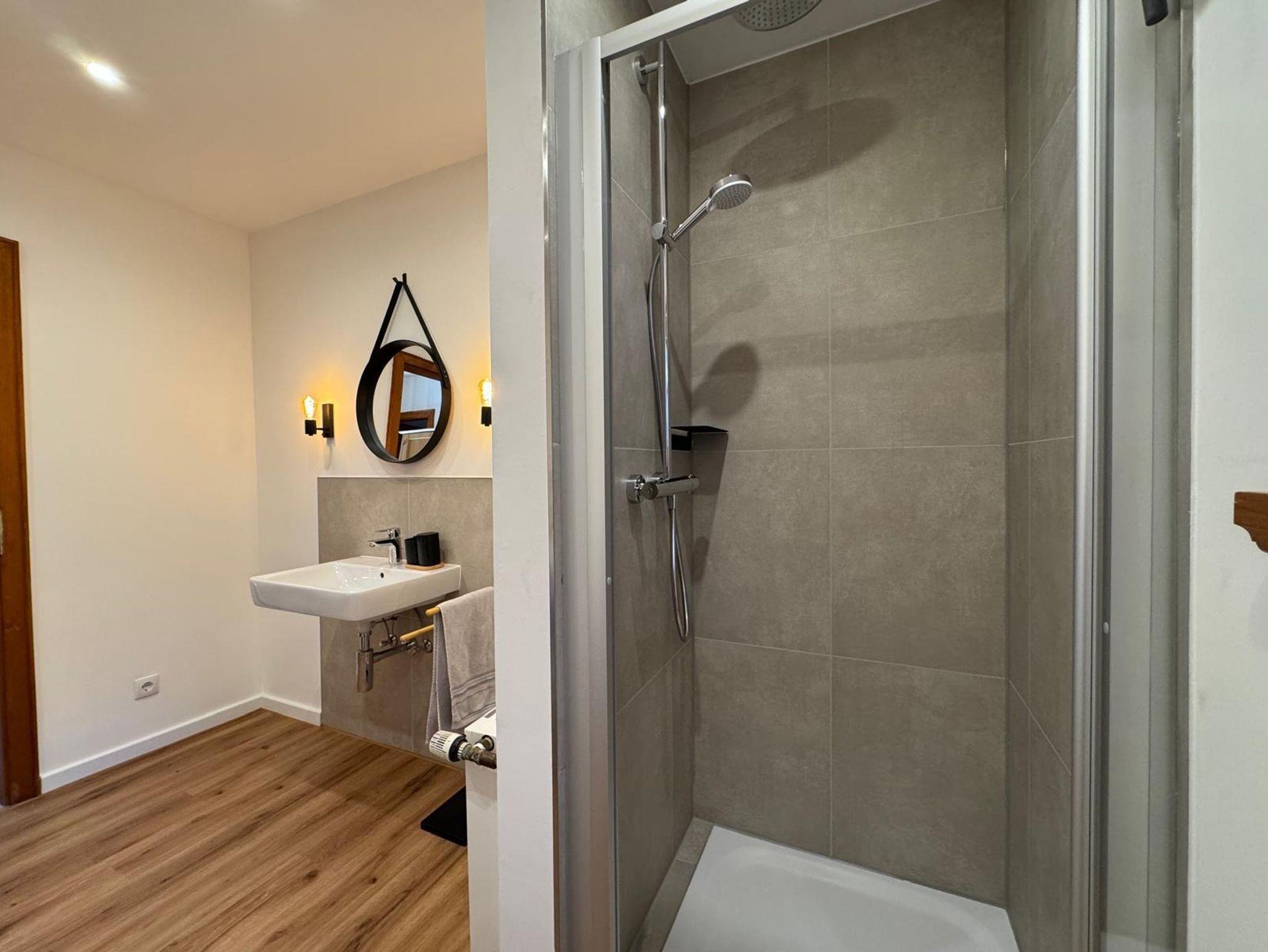 Das stilvolle Bad mit Dusche sorgt für den perfekten Start in den Tag oder nach erlebnisreichen Stunden in der Natur.