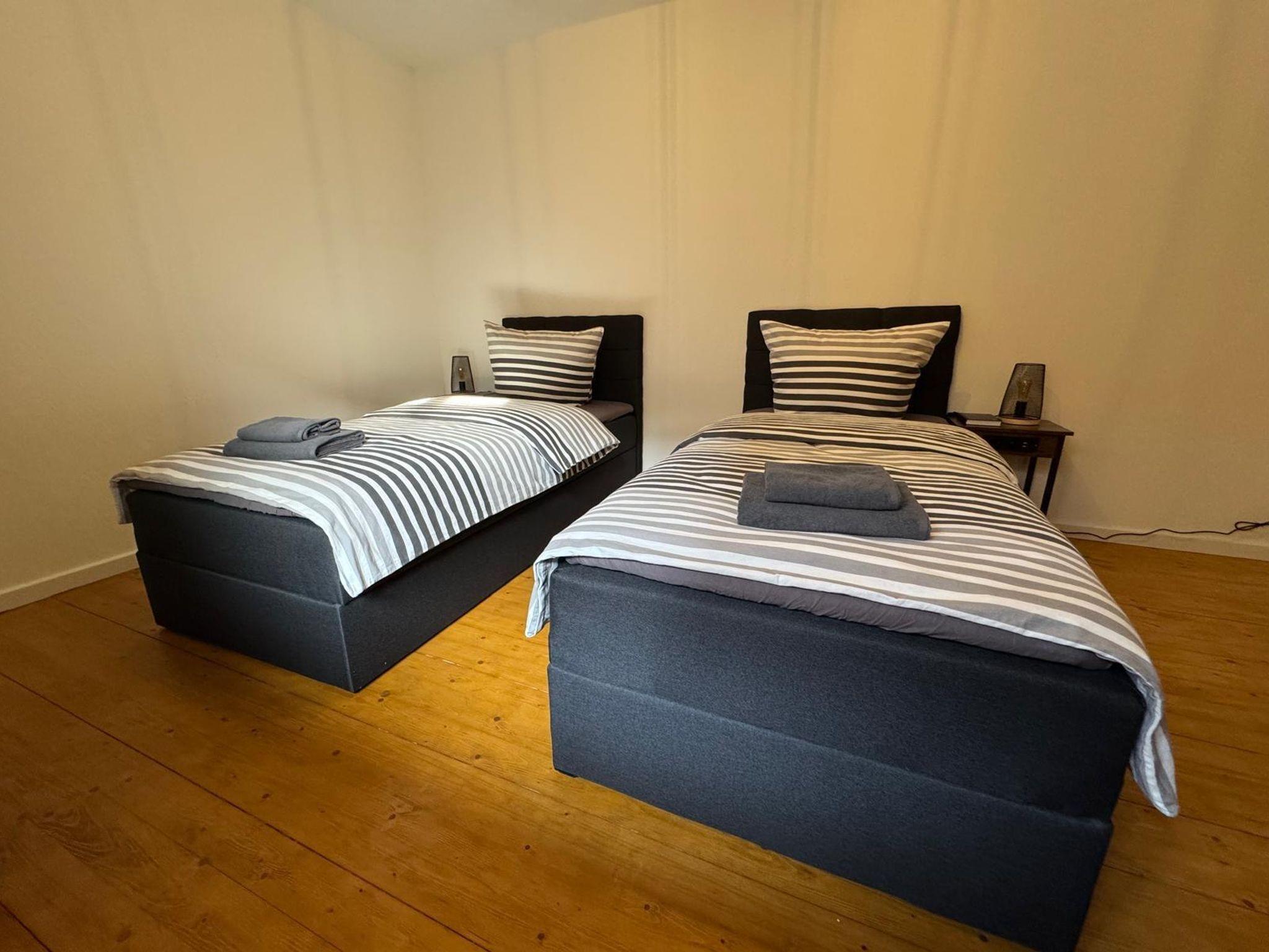 Jedes Schlafzimmer ist mit zwei komfortablen Einzel-Boxspringbetten ausgestattet – ideal für erholsame Nächte. Ausserdem bieten wir einen Tisch mit zwei Stühlen um flexibel die Mahlzeiten im Eigenen Zimmer einnehmen zu können. Die Smart TV‘s sind unter anderem mit Waipu-TV ausgestattet, sodass Sie den gemütlichen Fernsehabend in vollen Zügen genießen können.