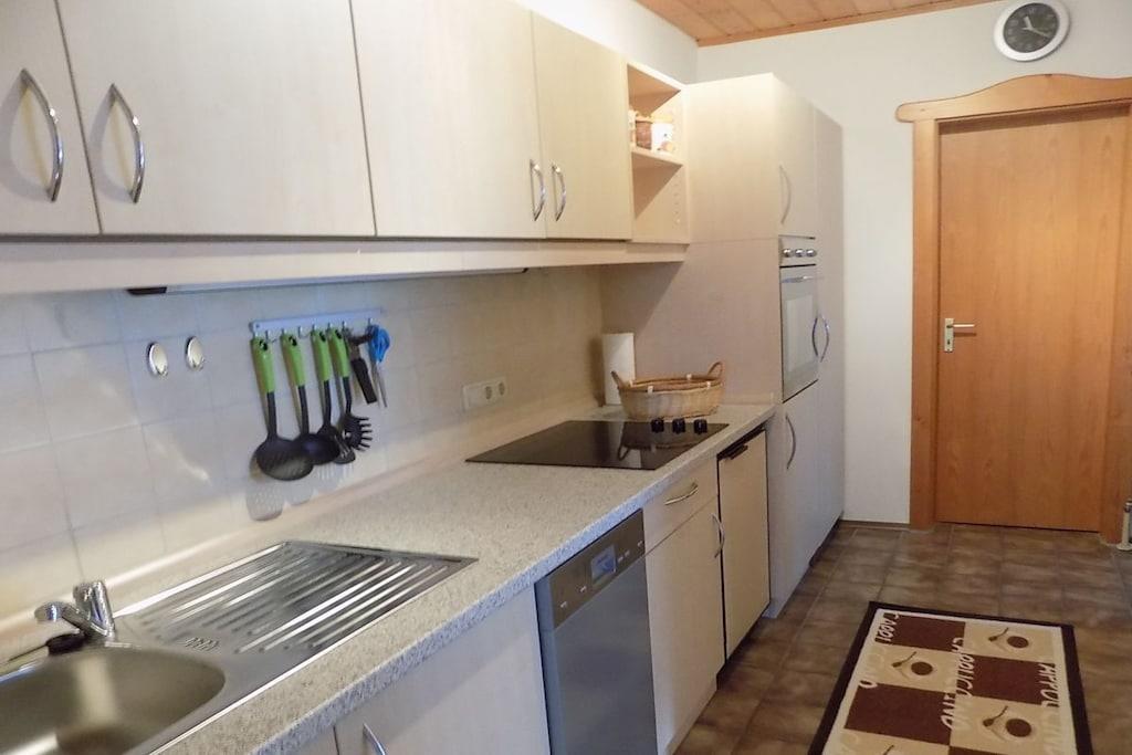 Unsere Ferienwohnung Waldblick Hauzenberg liegt im kleinen bayerischen Feriendorf Adalbert Stifter, in Südhanglage, sehr ruhig im Luftkurort Hauzenberg-Raßreuth. Die Ferienwohnung bietet Platz für 4 Personen. Die Ferienwohnung befindet sich ruhig gelegen am Waldrand mit großzügiger möblierter Terrasse und zwei Gartenliegen. Die 2 Zimmer-Ferienwohnung im EG, ca. 60 m² , eigener Eingang, ist mit allem ausgestattet was man zu einem entspannten Urlaub braucht. Küchenzeile mit Geschirrspüler, Backofen, Toaster, Kaffeemaschine, Eierkocher, Wasserkocher. Gemütliches Schlafzimmer mit 24 cm Komfort Matratzen .Ein großes Wohn-Esszimmer. Im Wohnbereich befinden sich zudem ein Schrankbett für 2 Personen (ca. 180x200 cm) und ein 50 Zoll TV. Geräumiges einfaches Bad mit Dusche , WC und Fenster. Wlan kostenfrei. Verdunkelung vorhanden. Eigener Parkplatz . Hallenbad, Außenpool, Sauna, Tischtennis und Spielplatz stehen unseren Gästen kostenlos zur Verfügung. Der Freudensee mit Kiosk, Badesteg und großer Liegewiese ist fußläufig in ca. 900 m erreicht. Eine Mappe mit Wandertips, Ausflügen und guter Gastronomie liegt in der Ferienwohnung aus. Ab 01.07.2022 steht in der Rezeption Waschmaschine und Trockner für unsere Gäste zur Verfügung (Gebühr). Bei uns ist jeder willkommen, ob groß oder klein. Auch brave Vierbeiner dürfen mit. Ihre Familie Schütz und Familie Schmidt