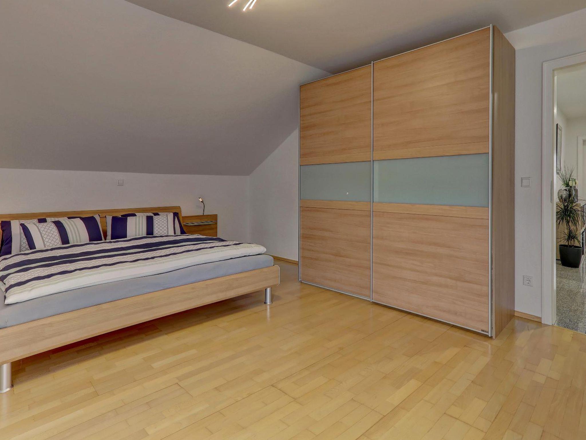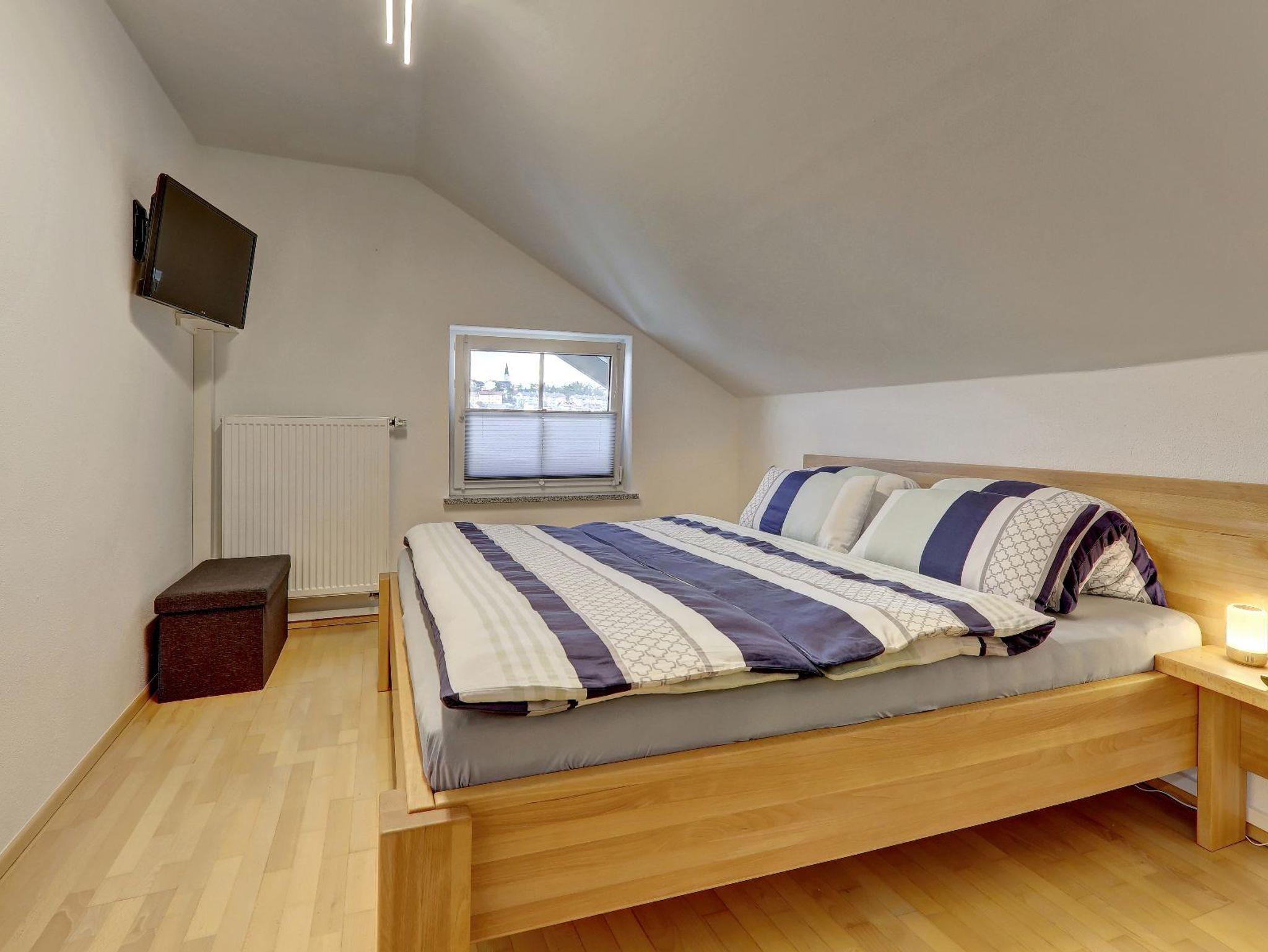Dachgeschoß Ferienwohnung 105 qm, mit 3 Balkonen auf der Ost,-Süd- und Westseite.Die Ferienwohnung besteht aus einem großzügigen Eingangsbereichh, ein Schlafzimmer mit Klimaanlage, Schrank und Bett 200 x 200 cm, TV und Balkon Ostseite mit Aussicht zum Staffelberg!Ein weiteres Schlafzimmer mit einem Bett 180 x 200 cm, TV und Sideboard,einer gemütlichen Küche mit Sitz- und Essgelegenheit, Spülmaschine, Elektroherd, Kühlschrank mit Gefrierfach, Toaster, Mikrowelle, Filterkaffeemaschine und sonstigen Küchenartikeln und Balkon auf die Südseite. Im Wohnzimmer befindet sich eine Couch mit Schlafmöglichkeit, TV, großen Tisch. Über den Wohnzimmerbalkon kann man die herrliche Aussicht auf die Granitstadt genießen. Das Bad ist ausgestattet mit einer Badewanne, Dusche und Toilette, Fön und Wäscheständer. W-Lan kostenfrei