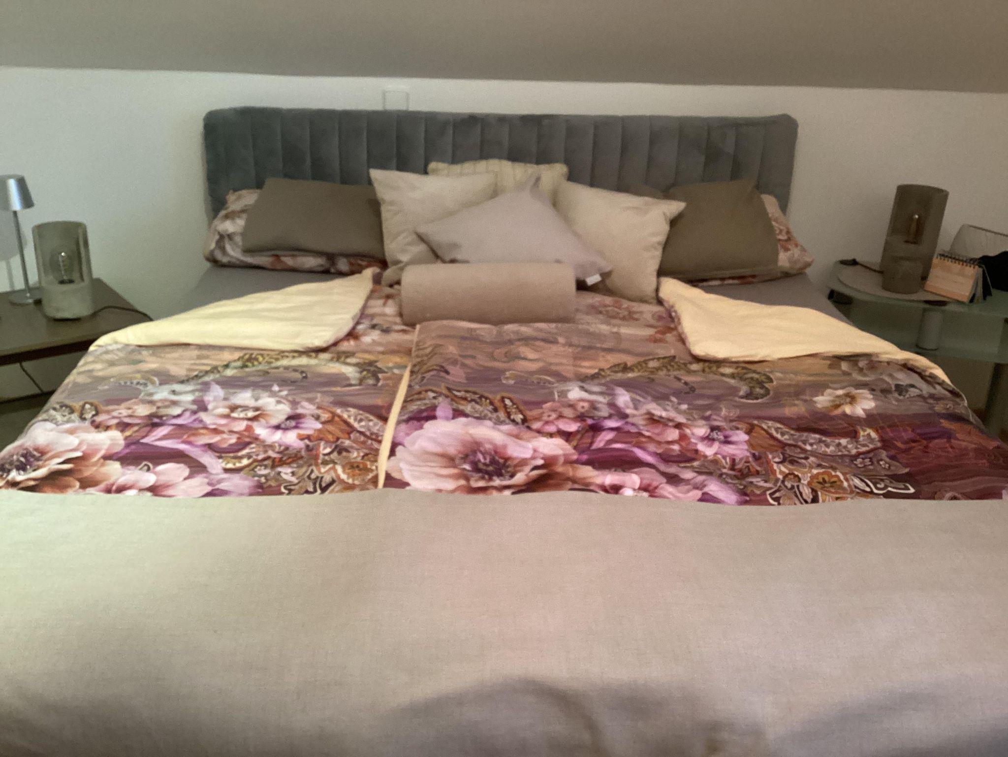 Sie verfügt über zwei separate moderne Schlafzimmer, jeweils mit einem komfortablen Doppelbett und einem kuscheligen Boxspringbett ausgestattet – ideal für Familien oder befreundete Paare.