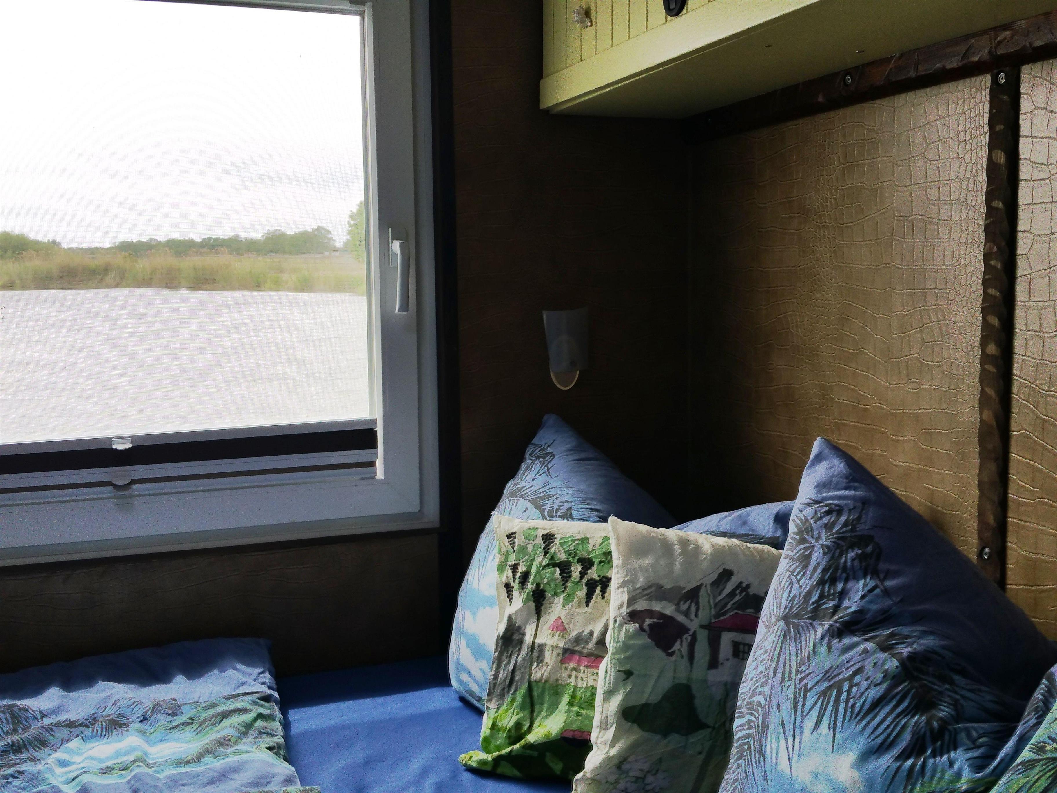 Auf dem Hausboot können bis zu 4 Personen unterkommen. Es ist vollständig ausgestattet mit 2 Schlafkabinen, Toilette/ Waschbecken, separater Dusche, Küchenzeile mit Kühl-Gefrierkombi, Gasherd und Backofen, Sitzgruppe, Satelliten-Fernsehen und CD-Radio sowie Klimaanlage. Genießen Sie den Blick auf das Wasser von der Terrasse aus. Hier können Sie abschalten, die Sonne genießen oder gemeinsame Mahlzeiten einnehmen.