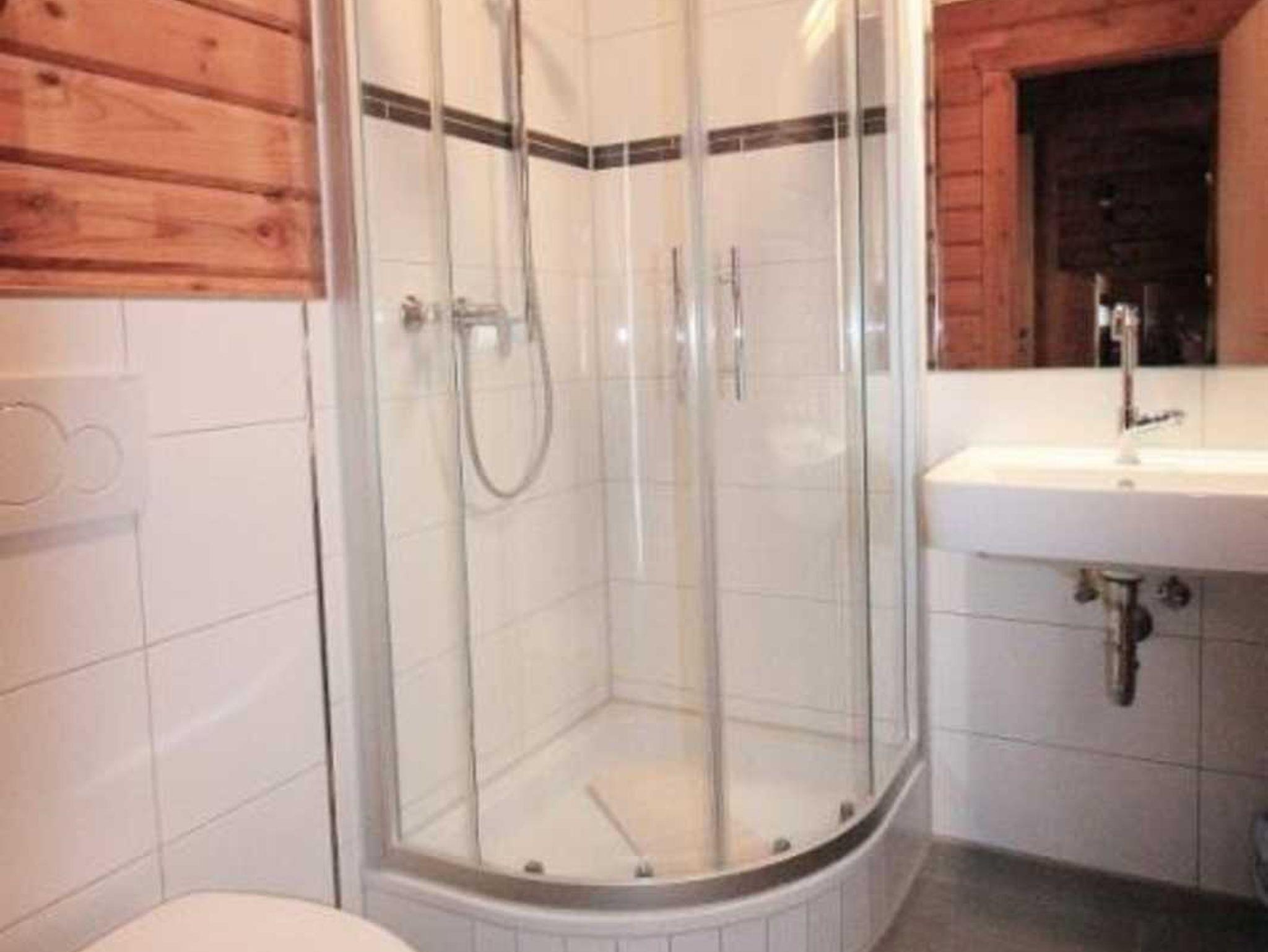 Es gibt ein Schlafzimmer mit Doppelbett, das 2. Schlafzimmer hat ein Etagenbett. Das Bad genügt gehobenen Ansprüchen mit hochwertigen Fließen an Boden und Wänden, der zeitgemäßen Dusche mit halbrundem Einstieg, WC und Waschbecken.