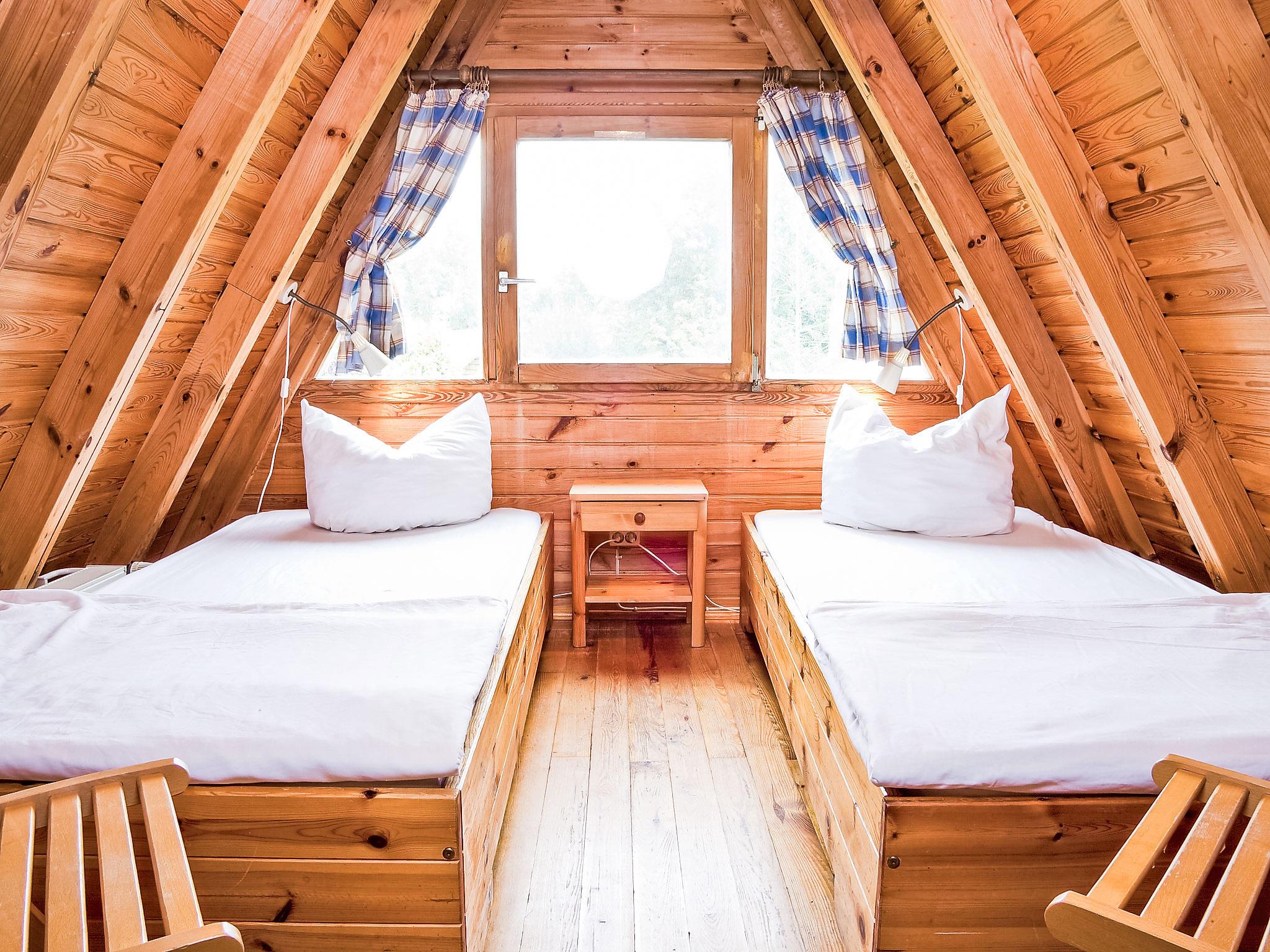 3-room house 50 m2 on 2 levels, on the ground floor. Simple furnishings: living/dining room with sloping ceilings with satellite TV and radio. Small kitchenette (3 hot plates, electric coffee machine). Shower/WC. Upper floor: (steep stair), 2 rooms with sloping ceilings, each room with 2 beds. Gas heating. Terrace roofed. Terrace furniture. Facilities: children's high chair (extra). Internet (WiFi, free). Parking at the house. Please note: non-smoking house. Maximum 2 pets/ dogs allowed. Smoke alarm. House constructed in timber, access to the top floor via a narrow staircase.