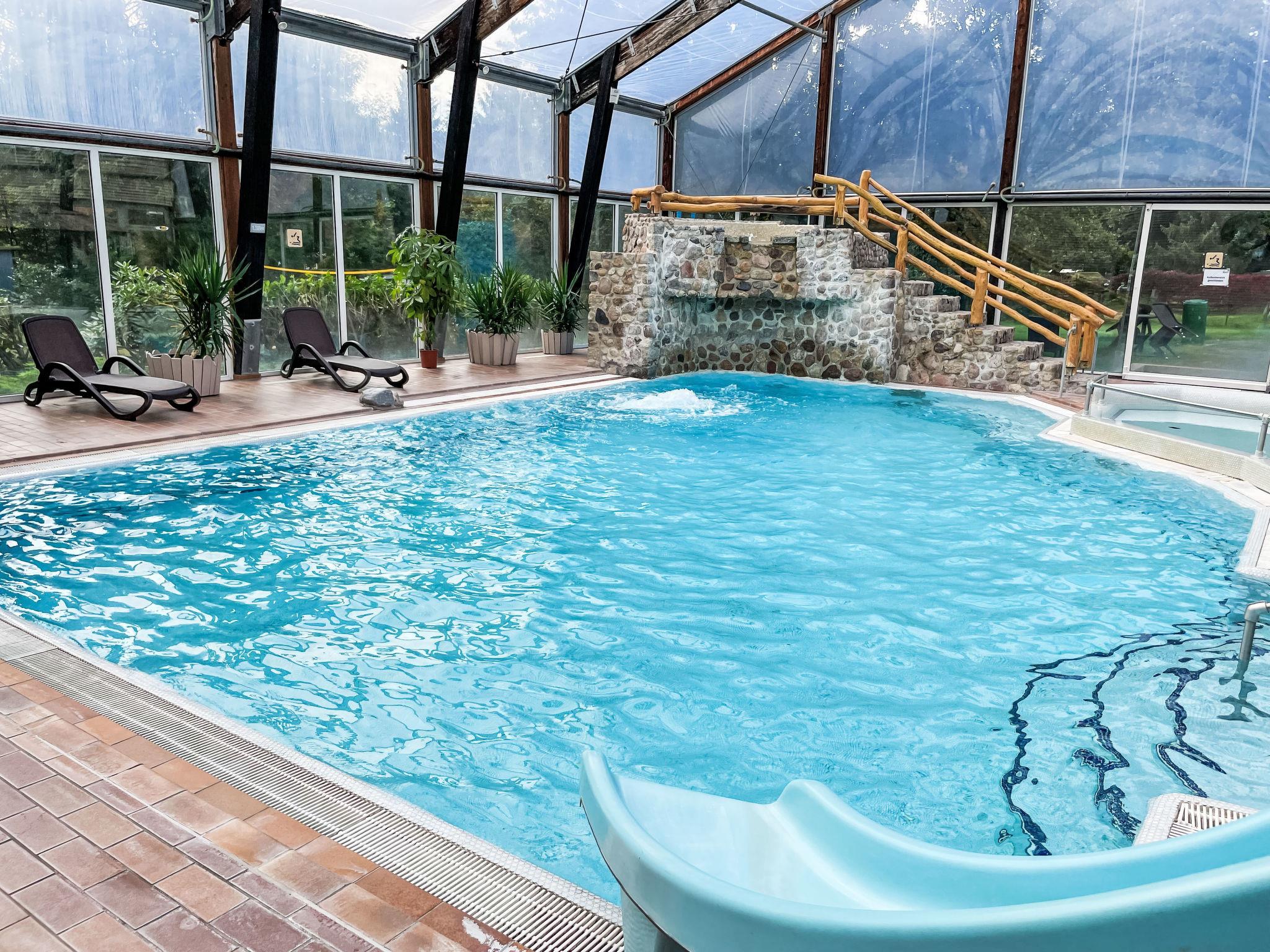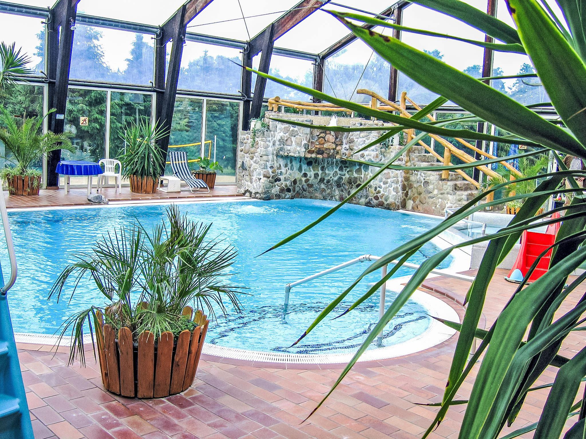 Klint 5 km from Hechthausen: Riding stables and child friendly resort "Geesthof". Outside the resort, 5 km from the centre of Hechthausen, in a quiet position, 100 m from the lake, directly by the river, in the woods. For shared use: indoor pool (15 x 10 m, seasonal availability: 21.Dec. - 01.Jan. and 04.Apr. - 02.Nov.). In the complex: reception, restaurant, sauna (extra). Table tennis, washing machine (extra), tumble dryer (for shared use, extra). Central parking spaces. Supermarket 4 km, bus stop 600 m, railway station "Hechthausen" 3 km, diving center 10 km, bathing lake 100 m. Please note: car recommended. Entertainment in the season. Suitable for families. The photograph shows a typical example. The Oste (a tributary of the Elbe with salmon stocks) runs along the edge of the holiday and camping complex. For shared use: outdoor pool (15 x 6 m), volleyball and football pitch, playgrounds, green and play areas. Riding lessons and guided rides through the adjacent forest area on request. Horse guest boxes, bicycles and go-karts can be rented for a fee. Visits to the indoor and outdoor pool areas are included in the rental price. The restaurant and swimming pool are closed in the winter season.