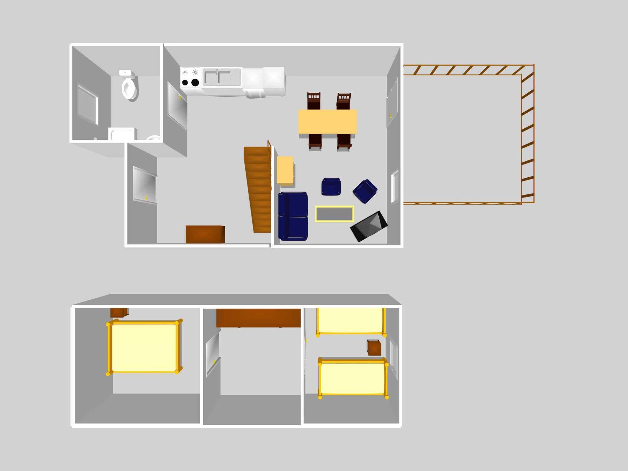 • 2 Einzelbetten 1 Doppelbett über Spartreppe