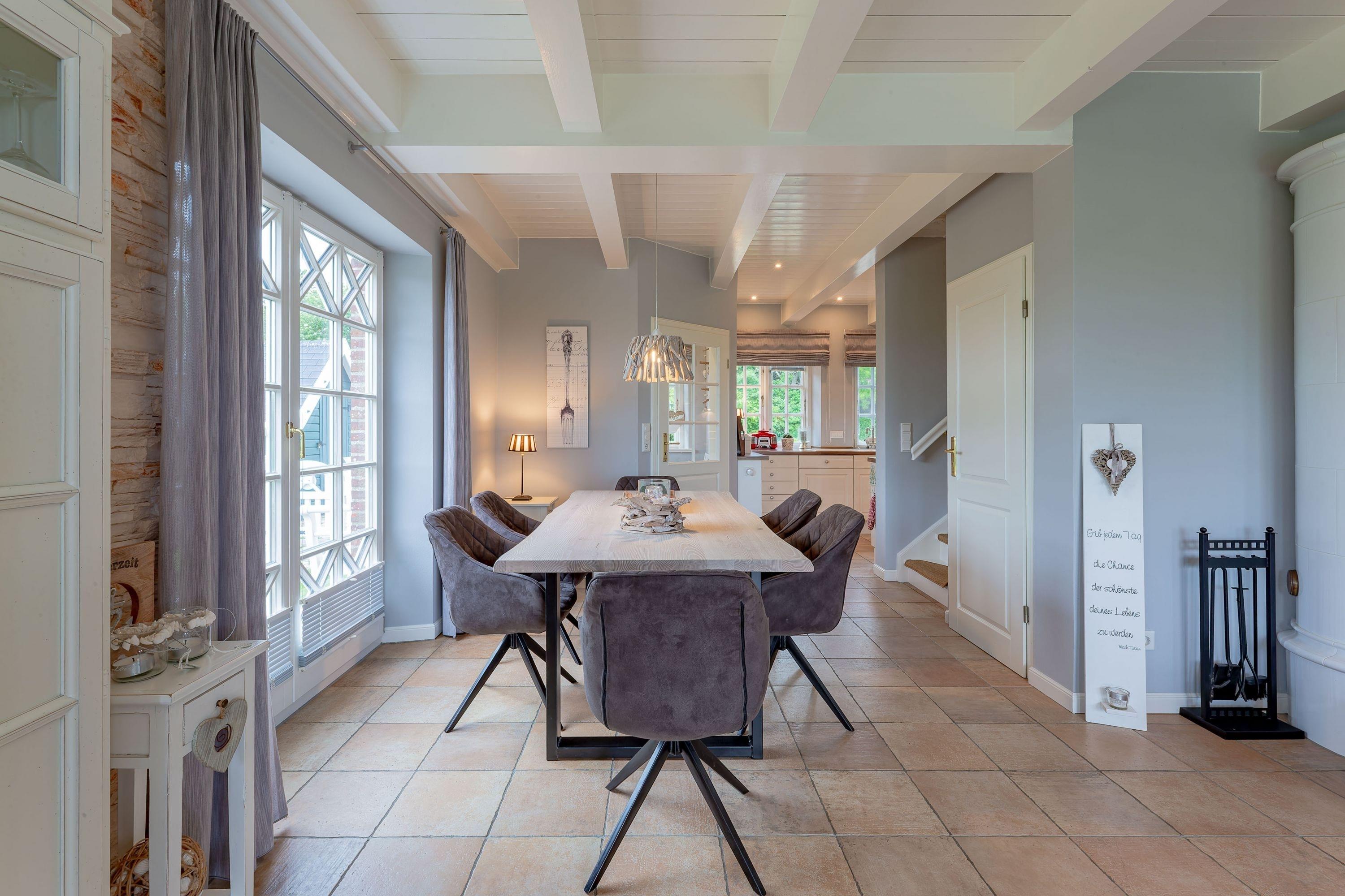 Nur wenige Gehminuten vom Meer und Strand entfernt liegt überaus gepflegte Reetdachobjekt an der Traumstraße. Hier können Sie Nordseeurlaub pur genießen. Morgens weht der Wind die salzhaltige Luft vom Meer direkt durch Ihre großzügige Haushälfte. Entweder gehen Sie nun sofort zum Strand oder genießen einfach einen schönen Tag im Haus oder Garten. Die gemütlich eingerichtete Haushälfte bietet jede Menge Platz und viel Komfort für einen erholsamen Urlaub. Sie werden Ihren Aufenthalt genießen. Wir freuen uns auf Sie.