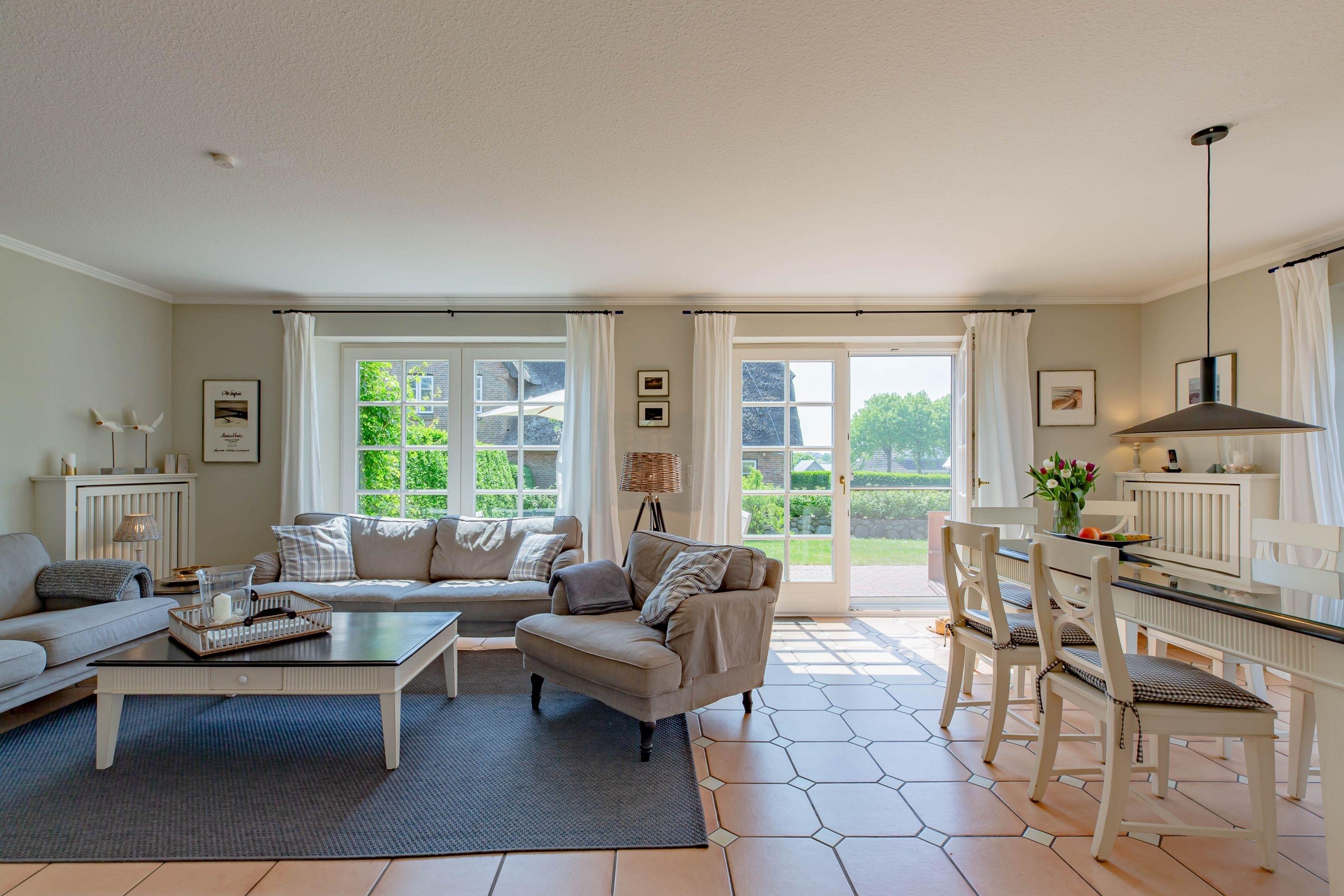 Träumen Sie auch gerade vom Meer und Strand? Nur wenige Gehminuten vom Strand entfernt liegt das wunderbar gepflegte Reetdachobjekt an der Traumstraße. Hier können Sie Nordseeurlaub pur genießen. Morgens weht der Wind die salzhaltige Luft vom Meer direkt durch Ihre großzügige Haushälfte. Entweder gehen Sie nun sofort an den Strand oder genießen einfach einen schönen Tag im Haus oder Garten. Die gemütlich eingerichtete Haushälfte bietet jede Menge Platz und viel Komfort für einen erholsamen Urlaub. Sie werden Ihren Aufenthalt genießen. Weitere Bilder und einen Film sehen Sie unter www.reetdachhaus-hedehusum.de