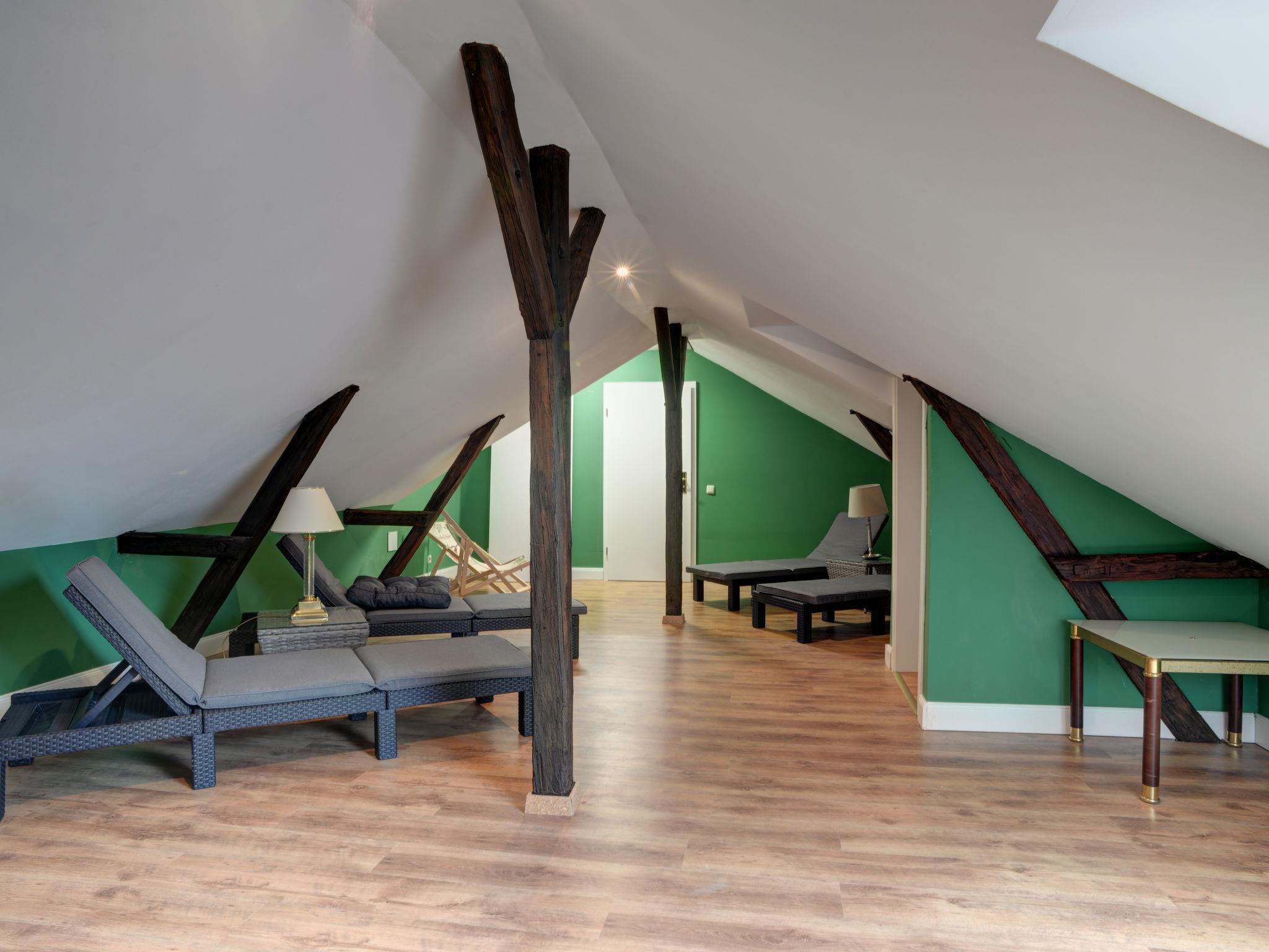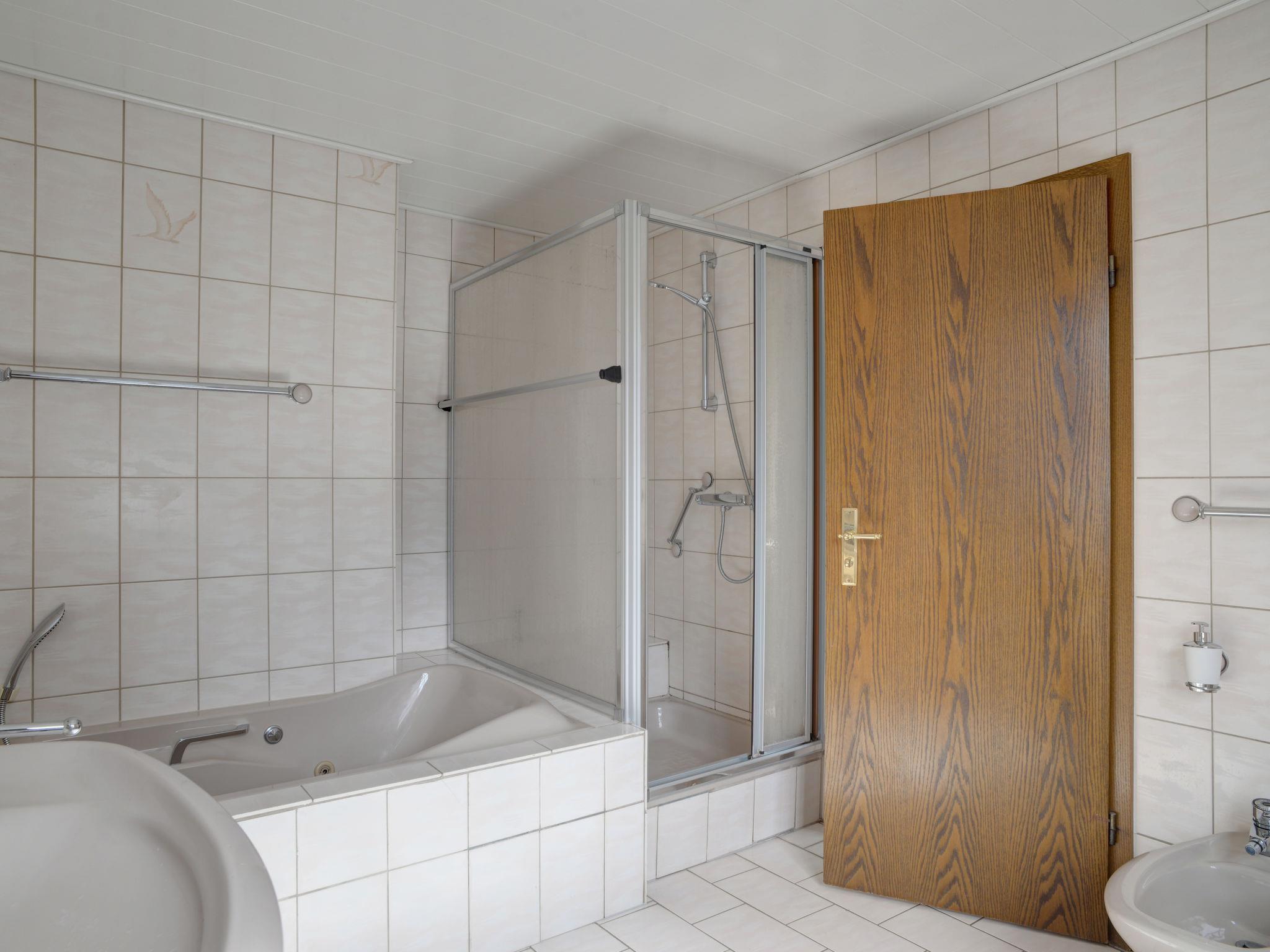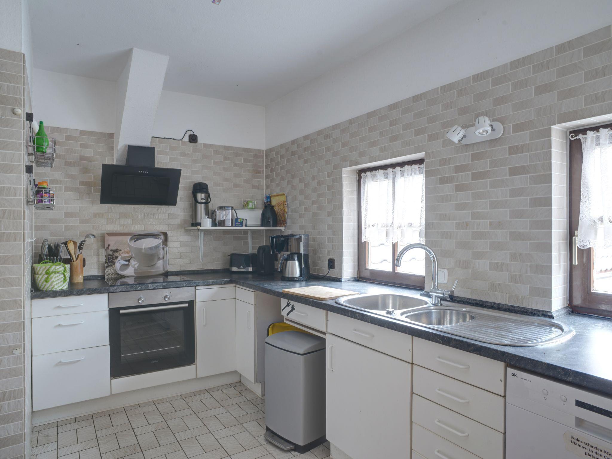 "Berghof Hohe ganzes Haus", 13-room house 496 m2 on 3 levels. Spacious, practical and cosy furnishings: living room with Scandinavian wood stove. Living/dining room with satellite TV (flat screen). 1 room with 1 double bed. 1 room with 1 double bed. Kitchen (oven, dishwasher, 4 ceramic glass hob hotplates, microwave, electric coffee machine). Bath/shower/bidet/WC, hydro massage bath. Upper floor: living room with satellite TV (flat screen). Living/dining room with open-hearth fireplace and CD-player. 1 room with 1 double bed (180 cm, length 200 cm). 1 room with 1 double bed (180 cm, length 200 cm). 1 room with 1 double bed (180 cm, length 200 cm). 1 room with 1 bed (80 cm, length 200 cm). Kitchen (oven, dishwasher, 4 ceramic glass hob hotplates, microwave, electric coffee machine). Shower/WC, bath/shower/bidet/WC, hydro massage bath. 2nd upper floor: open living/sleeping room with curtain with 1 double sofabed (200 cm, length 200 cm), 1 double bed, dining table, satellite TV and hi-fi system. Open kitchen (dishwasher, 4 ceramic glass hob hotplates, toaster, kettle, microwave, electric coffee machine) with Scandinavian wood stove, dining table and bar. 2 showers/WC. Top floor: (spiral staircase) open, with sloping ceilings, 1 room, ceiling height 160 cm with 2 beds (90 cm, length 200 cm). Living/sleeping room with sloping ceilings with 3 beds, cable TV and flat screen. Kitchen (oven, dishwasher, 3 ceramic glass hob hotplates, kettle, freezer, grill, electric coffee machine) with dining table. Shower/WC. Electric heating. Parquet floors. Facilities: baby cot, logs (extra). Internet (WiFi, free). Please note: non-smokers only. Maximum 3 pets/ dogs allowed. Smoke alarm, fire extinguisher.