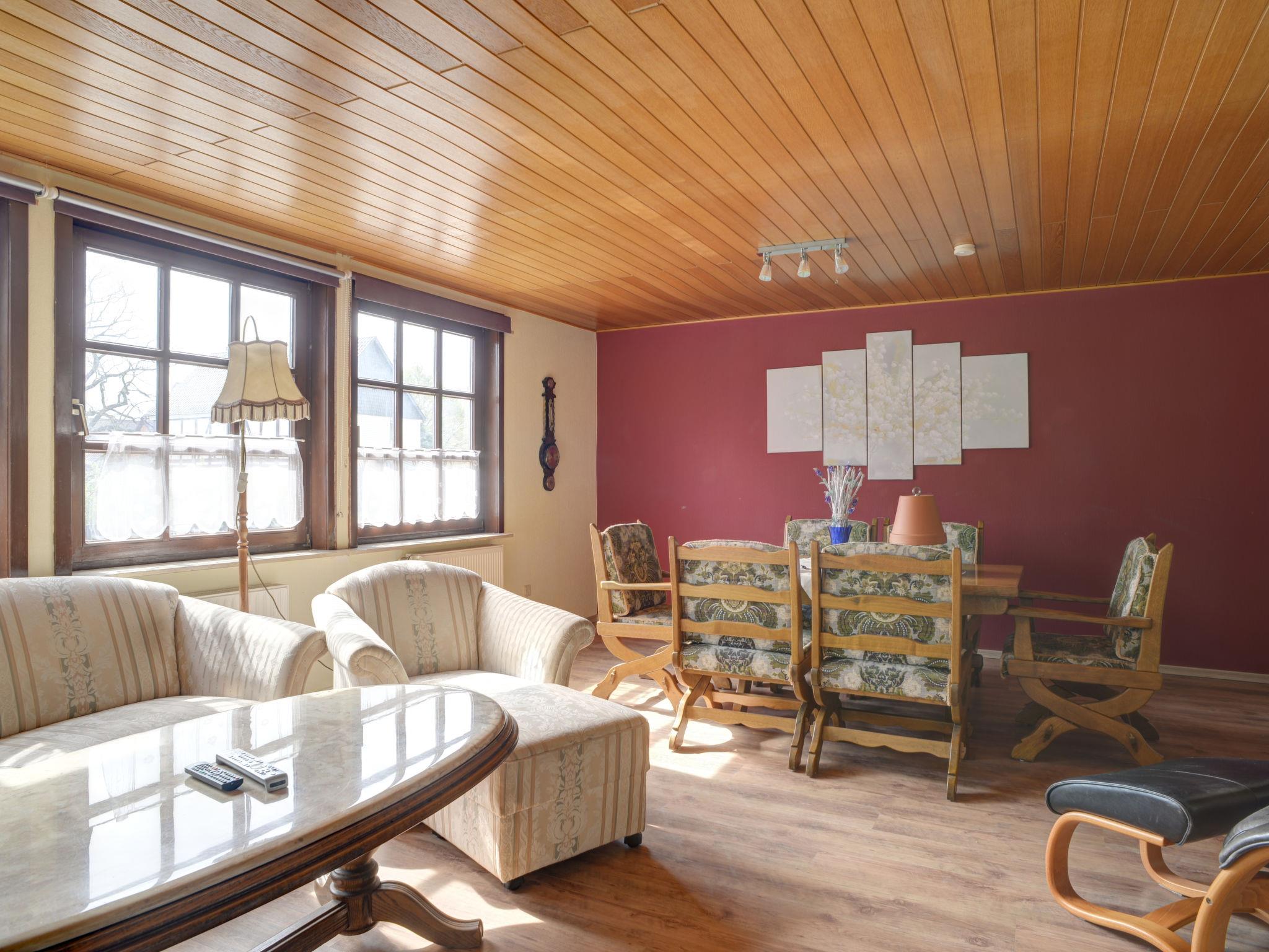 Beautiful, historical working farm, 3 storeys, from the 19th century, renovated in 2019, surrounded by trees and meadows. In the district of Hohe 5.3 km from the centre of Hehlen, 5 km from the centre of Bodenwerder, in a quiet position, 400 m from the edge of the forest. For shared use: large garden 1'500 m2 (fenced) with lawn and trees. Terrace (20 m2), garden furniture, barbecue, children's playground (slide, swing). In the complex: fitness room (extra). Storage room for bicycles, washing machine (for shared use, extra), drying room. Parking (for 10 cars) on the premises, single garage (extra) at the house. Shop 7 km, grocery 5 km, supermarket 7 km, restaurant 5 km, bakery 5 km, bus stop "Hohe" 20 m, outdoor swimming pool 8 km, indoor swimming pool 9 km. Walking paths from the house 200 m. Nearby attractions: Welterbe Corvey 33 km, Porzellanmanufaktur Fürstenberg 40 km. Well-known lakes can easily be reached: Humboldtsee 28 km. Garden seating area (200 m2) and the second terrace (9 m2) are available for shared use (both terraces are not visible to each other). Finnish steam tub (available 01.04.-30.11.) for shared use.