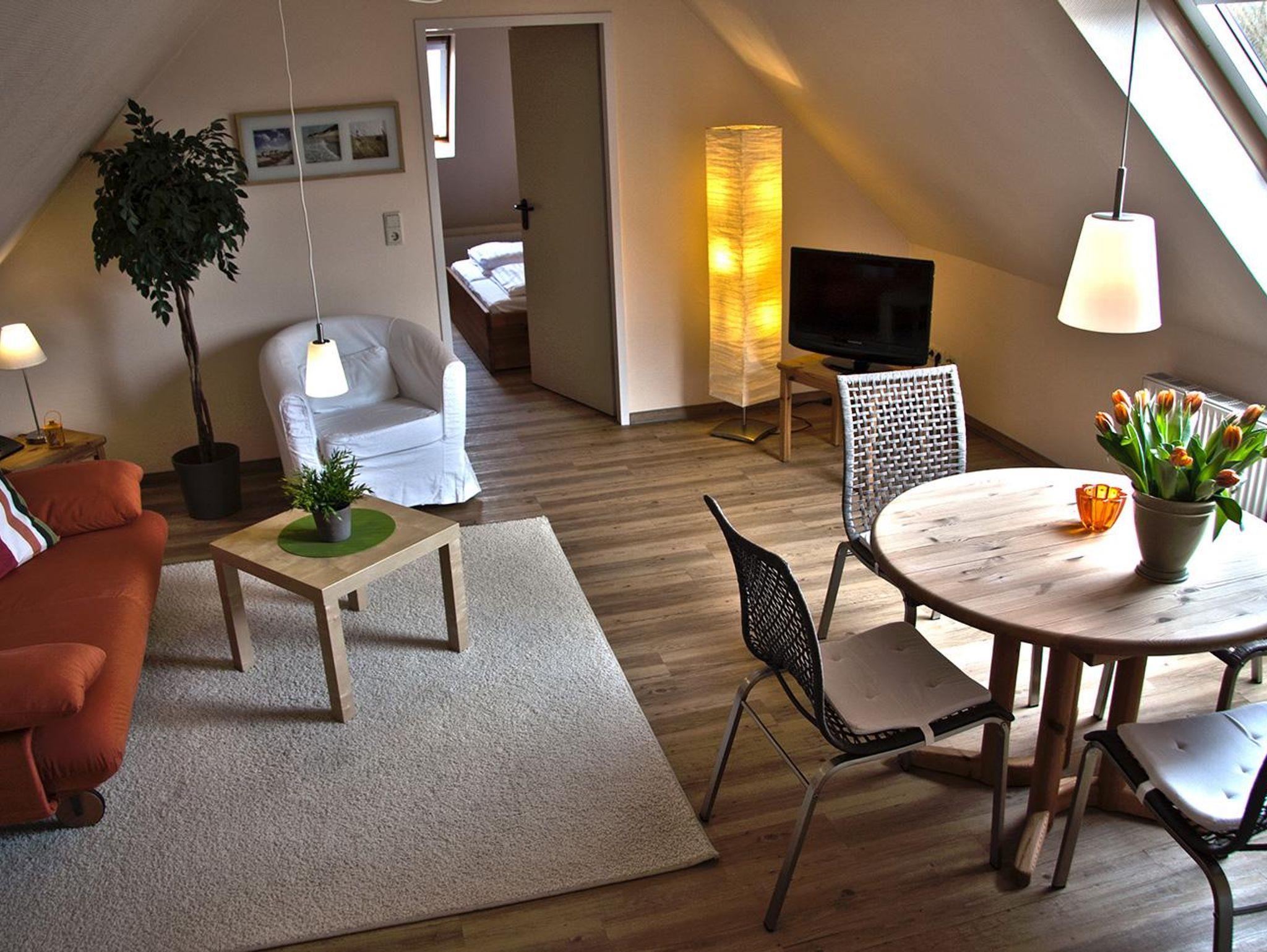 Die Appartements befinden sich im ersten und zweiten Obergeschoss. Sie verfügen über 1 Wohn-/Schlafraum/Küche, Flur und Dusche/WC. Die liebevoll eingerichteten Appartements im skandinavischen Stil sind lichtdurchflutet und laden zum Wohlfühlen ein. Ausstattung: Pantry-Küche, Kühlschrank, Mikrowelle, HD-Fernseher, Radiowecker, kostenloses Telefon (Festnetz innerhalb Deutschlands), kostenloser W-Lan-Zugang.