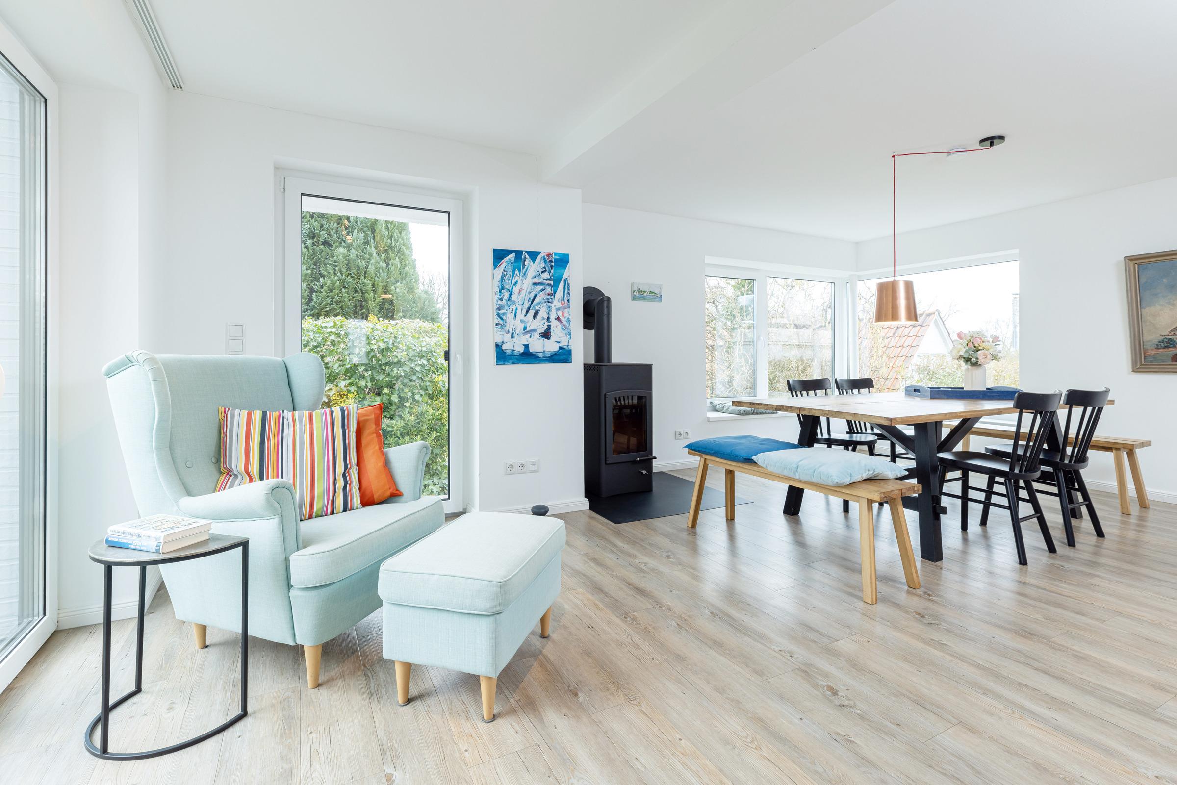 Die 3-Zimmer-Doppelhaushälfte Kapitän Clausen befindet sich in einer ehemaligen Fischersiedlung, einen kurzen Fußweg über den Fördewanderweg entfernt zum schönen Sandstrand. Auf zwei Etagen mit insgesamt 110 m² Wohnfläche haben Sie optimale Bedingungen für max. 4 Personen.
