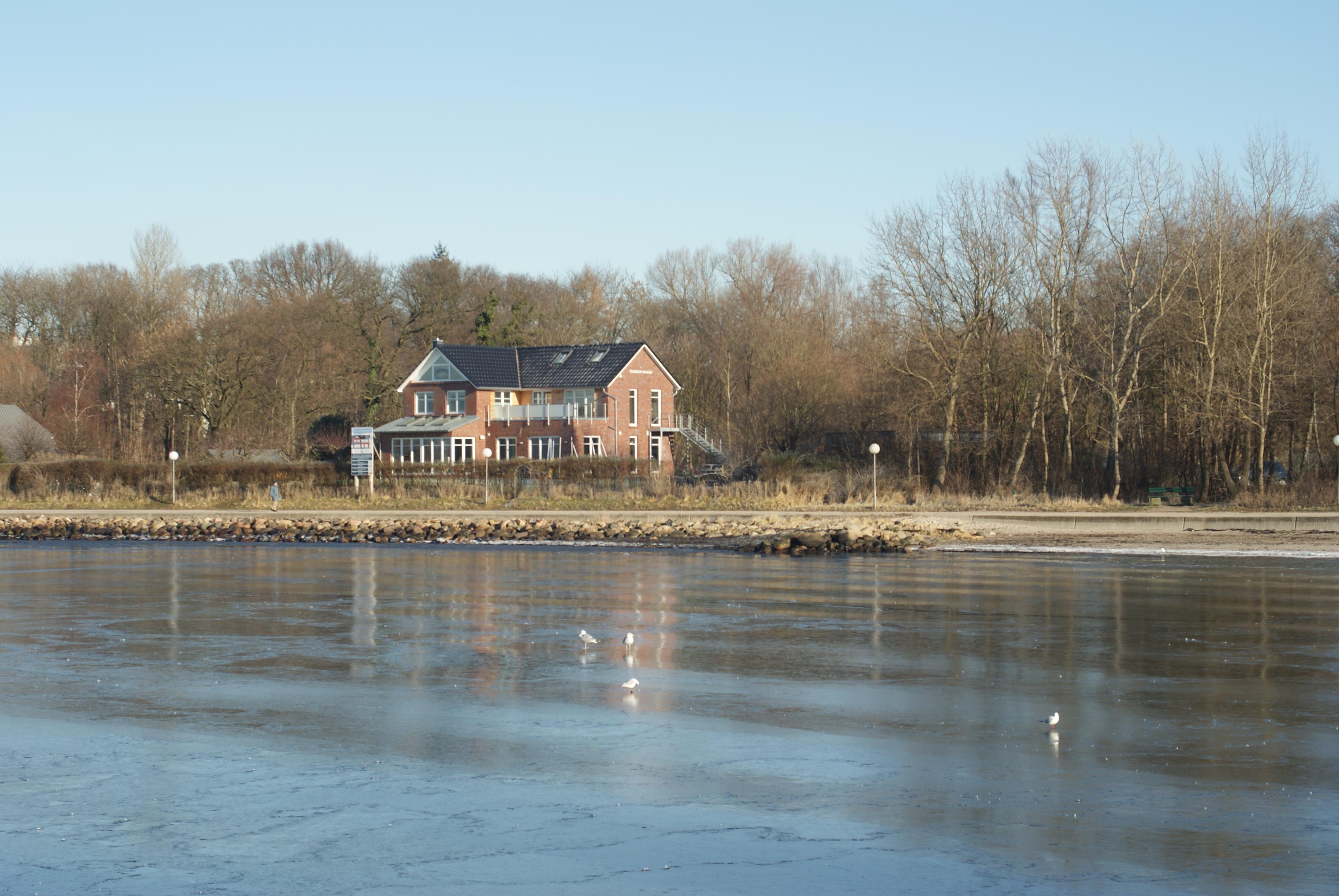 Die in 2010 erstelle Ferienwohnung erfüllt höchste Ansprüche: nur 20 m von der Wasserlinie entfernt und nur durch einen ruhigen Fußweg vom Ufer entfernt, bietet die Wohnung unverbaubaren Fördeblick mit großer Dachterrasse.