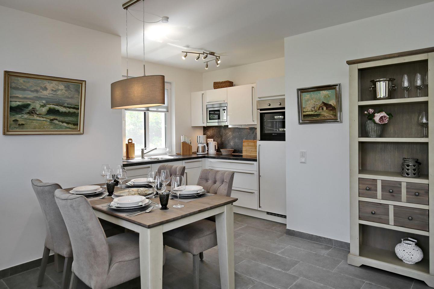 Die Küchenzeile ist modern und voll ausgestattet. Hier werden Sie überzeugt von einem 4-fach Cerankochfeld, einem Backofen, einem Geschirrspüler sowie einer Mikrowelle und einem Kühlschrank mit Gefrierfach. Nützliche Geräte, wie ein Wasserkocher, eine Kaffeemaschine und ein Toaster, sind selbstverständlich Teil der Kücheneinrichtung.