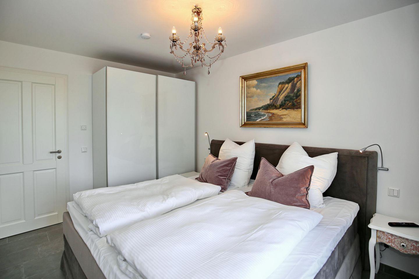 Beide Schlafzimmer der Ferienwohnung laden Sie zu geruhsamen Nachtstunden ein. Ein Boxspringbett (200 x 210 cm) und ein großer Kleiderschrank für Ihr Urlaubsgepäck lassen bei Ihnen im ersten Schlafzimmer keine Wünsche offen. Das zweite Schlafzimmer erwartet Sie mit einem komfortablen Doppelbett (2 x 90 x 200 cm) und einem ebenso großen Kleiderschrank. Um Ihnen maximale Unterhaltung zu bieten, sind als Highlight beide Schlafzimmer mit einem Flachbild-TV 48“ (121 cm Bildschirmdiagonale) ausgestattet. Als Sichtschutz oder zum Verdunkeln können Sie die stilvollen Vorhänge an den Fenstern nutzen.