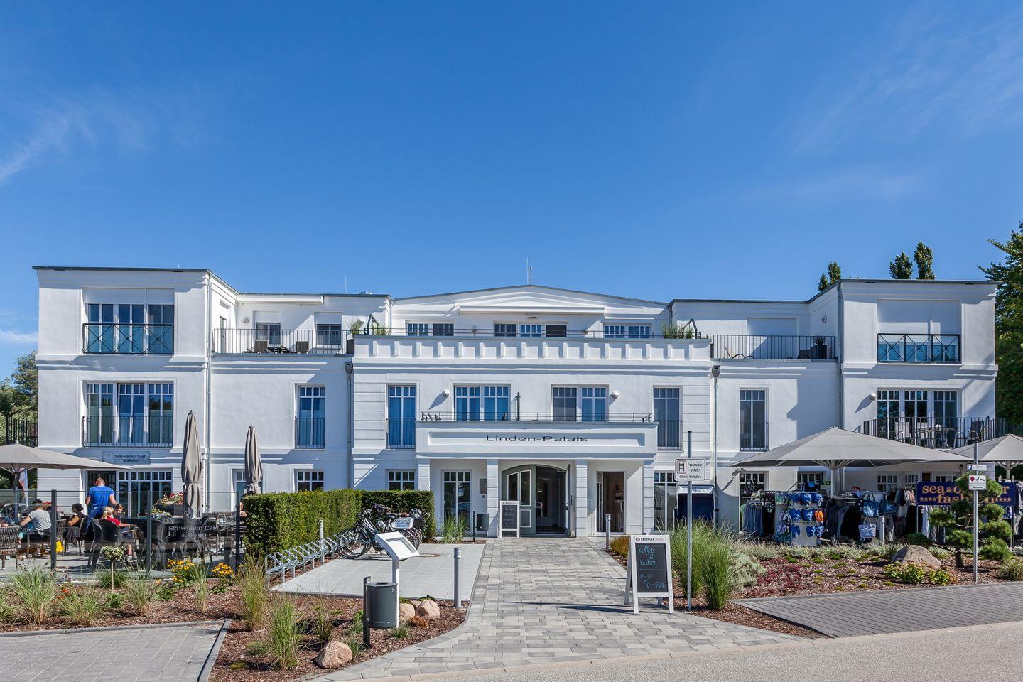 Die Ferienwohnung 35 im Linden-Palais in Heiligendamm ist eine exklusive und 75 m² große Penthouse-Wohnung für 2 Erwachsene mit 2 Balkonen und Seeblick. Zum Haus gehören zwei Fahrstühle.