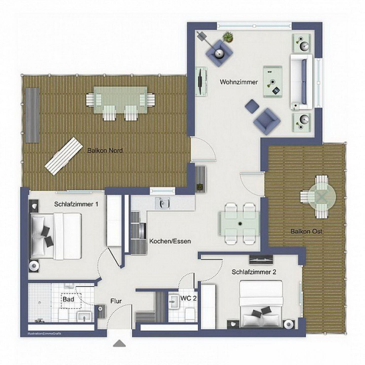 Die 90 m² große 3-Zimmer-Ferienwohnung für bis zu 4 Personen befindet sich in der zweiten Etage des Linden-Palais. Die Wohnung gliedert sich in einen kombinierten Wohn– und Essbereich, einer Küchenzeile, zwei Schlafzimmer, ein Tageslicht durchflutetes Duschbad und ein Gäste WC auf. Auf diese zwei Balkone mit Nord/Ost-West- Ausrichtungen können Sie die Sonnenstunden des Tages genießen mit einem fantastischen Seeblick. Zusammen mit dem nur 50 Meter entfernten Strand sind Ihnen erholsame Urlaubstage an der Ostsee garantiert.