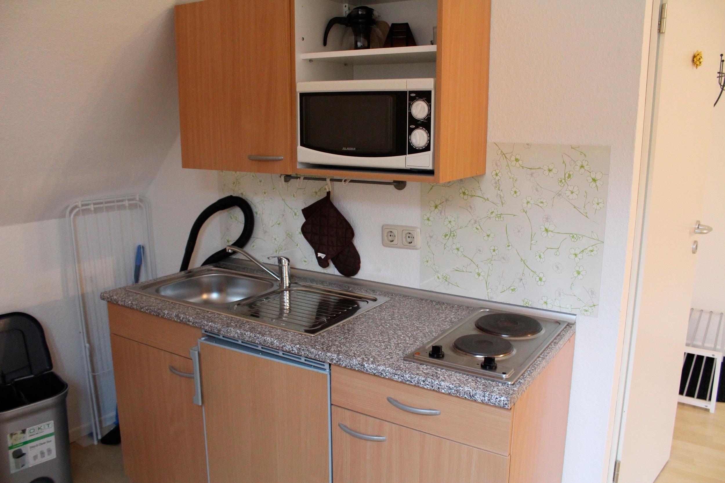 Studio-Wohnung, ca. 40 qm, im Obergeschoss. Zur Wohnung führt eine steile Treppe. Die helle, freundliche Nichtraucher-Wohnung ist mit einem Doppelbett, Pantryküche mit Mikrowelle und einer Sitzecke sowie einem sep. Essplatz ausgestattet. Sie finden selbstverständlich auch einen Flachbild-TV(Sat-TV), DVD und ein Stereo-Radio vor. Bad mit Dusche u. WC.