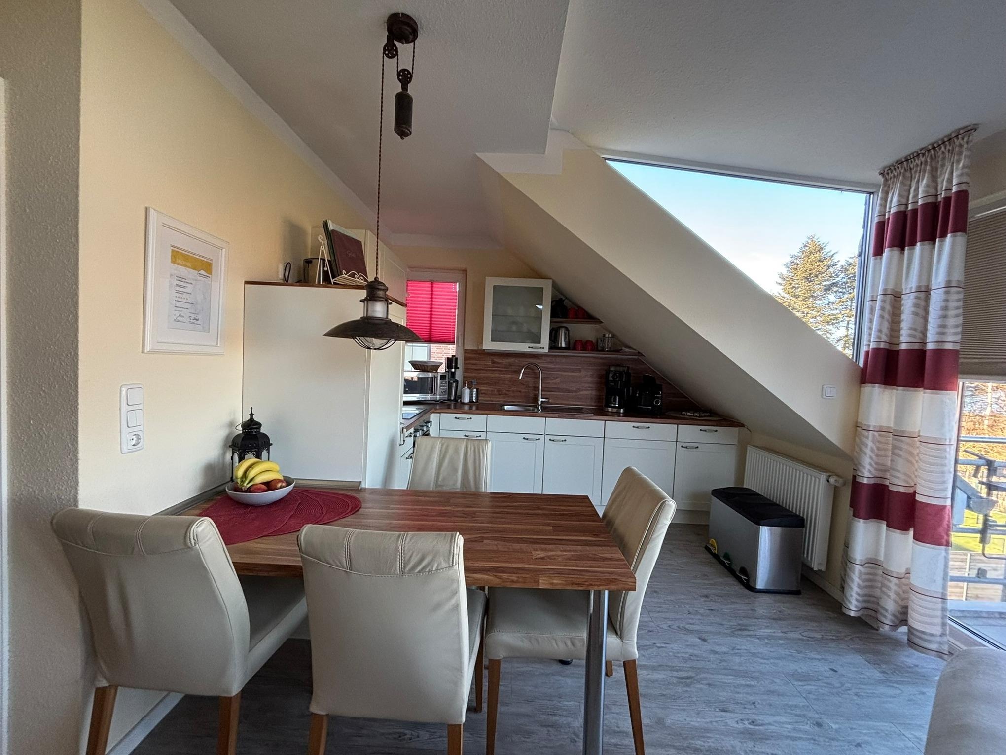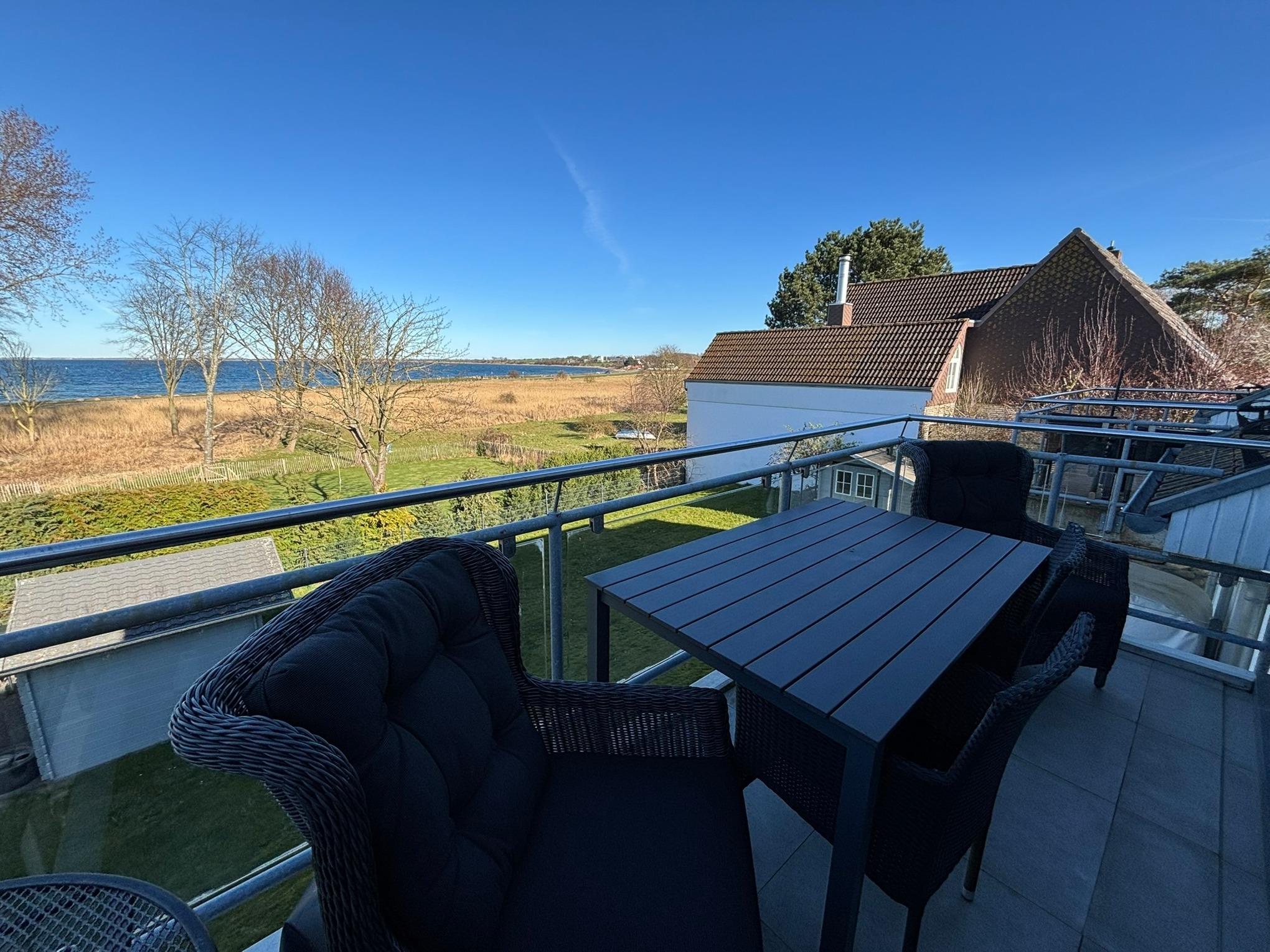 Im Wohn-Essbereich genießen Sie den Blick vom Balkon auf die Reede von Heiligenhafen, dem Leuchtturm von Strandhusen und auf eindrucksvolle Sonnenaufgänge.